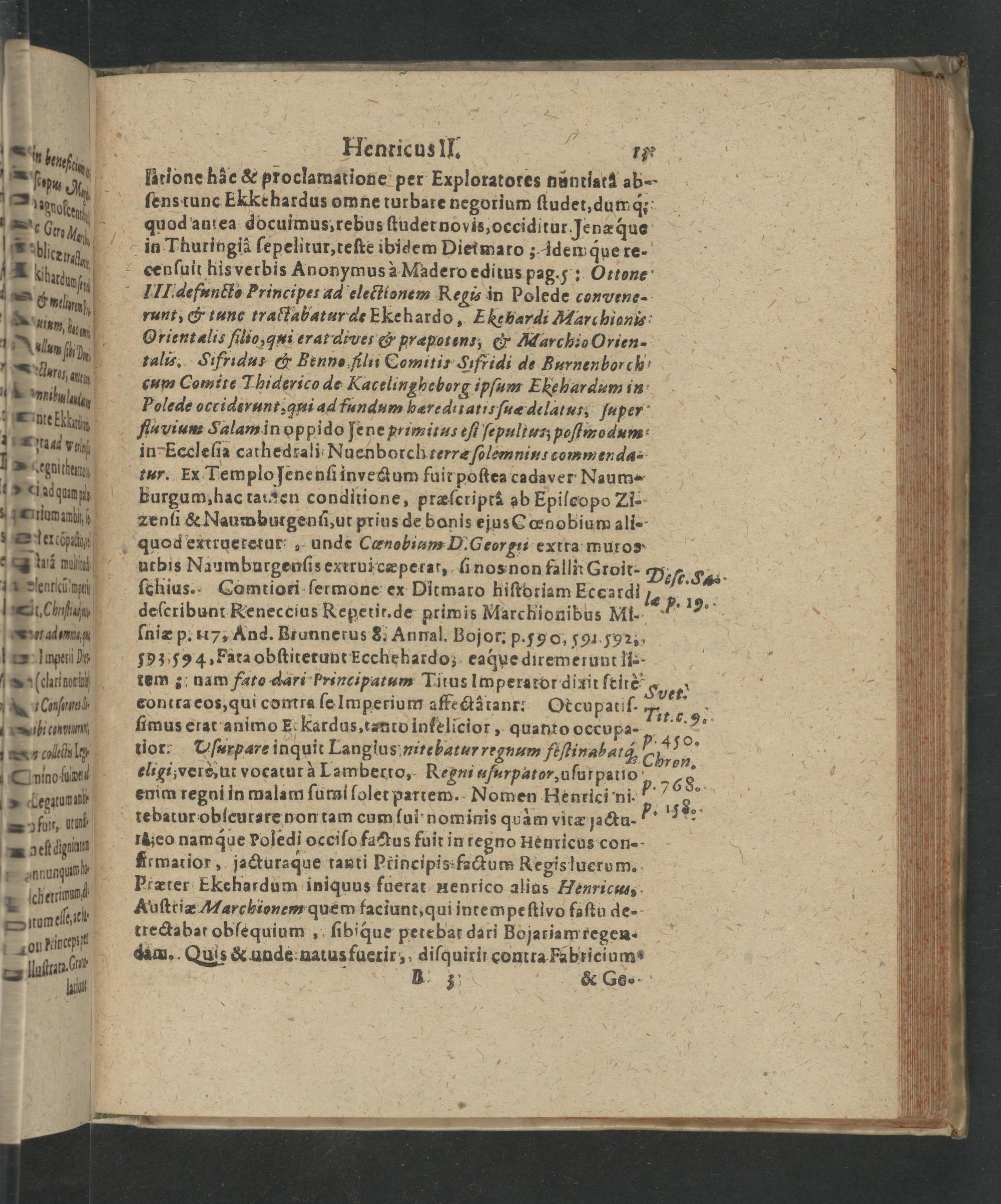 41 b 1 beutßn..„5... = ſopu 8 Hatione hae& proclamatione per Exploratores nuntiatd ab- ³έη azröien ſens tunc Ekkehardus omne turbare negorium ſtudet, dum q́; 3 n ln quod amea docuimus, rebus ſtudet novis, occiditur Jenæ que * lie ahe in Thuringis ſepelitur, teſte ibidem Dieimaro;idem que re- — arimn 2 cenſuit hisverbis Anonymus à Madero editus pag.: Ottone — 1 III defuncto Principer ad electionem Regis in Polede convene- K. am 5 runt,& taune trattabatur de Ekehardo, Ekehardi Marc hionis uun 1 m Orient alis filio, qai erat dives 6 præaporens,& March.„Orien. ülhe 3 talis. Sifridus& Benno filii Comitis Sifridi de Hurnenborch“