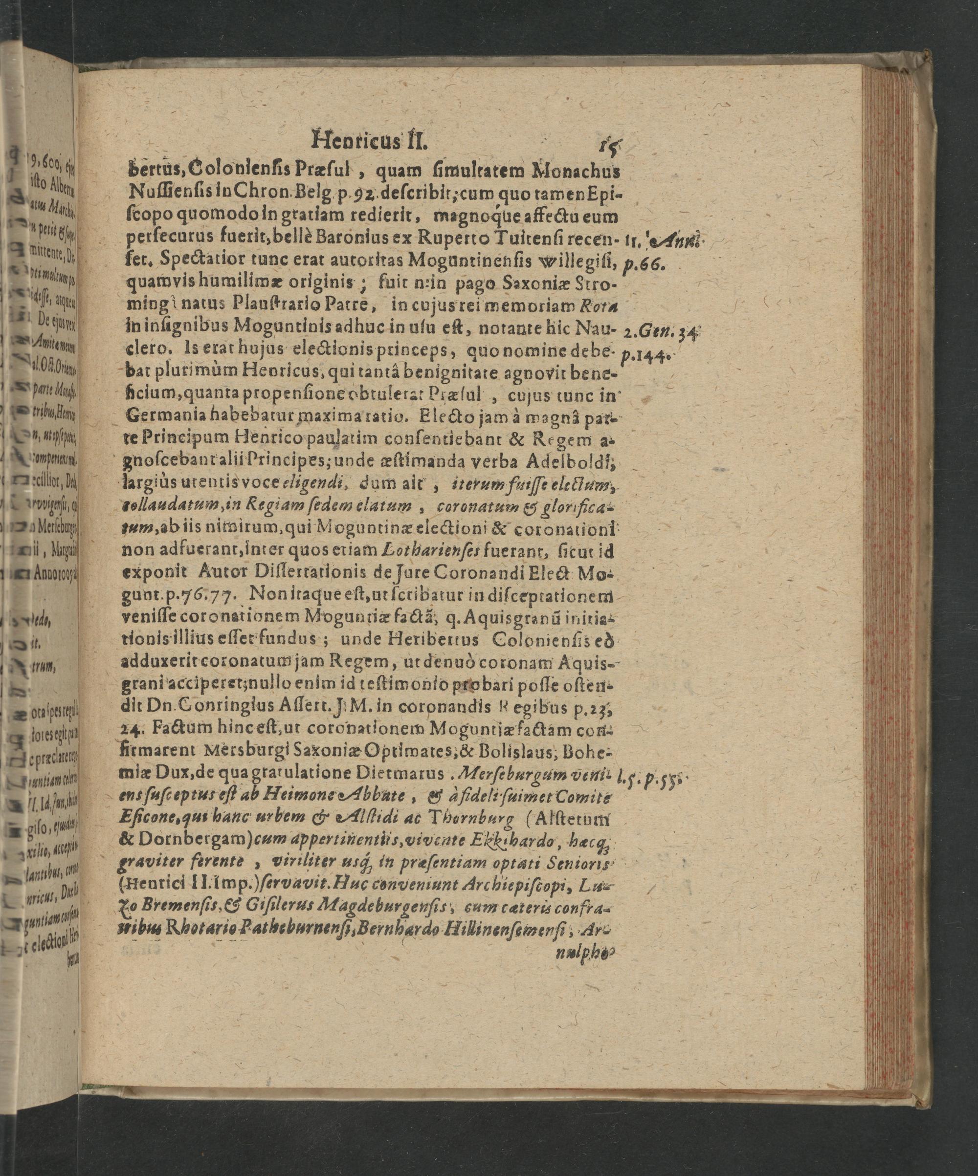 Henricus II. bertus, Colonienſis Præſul, quam ſimultatem Nonachus Nuſſienſis in Chron. Belg p. 92. deſcribit, cum quo tamen Epi- ſcopo quomodo in gratiam redierit, magnoque affectu eum