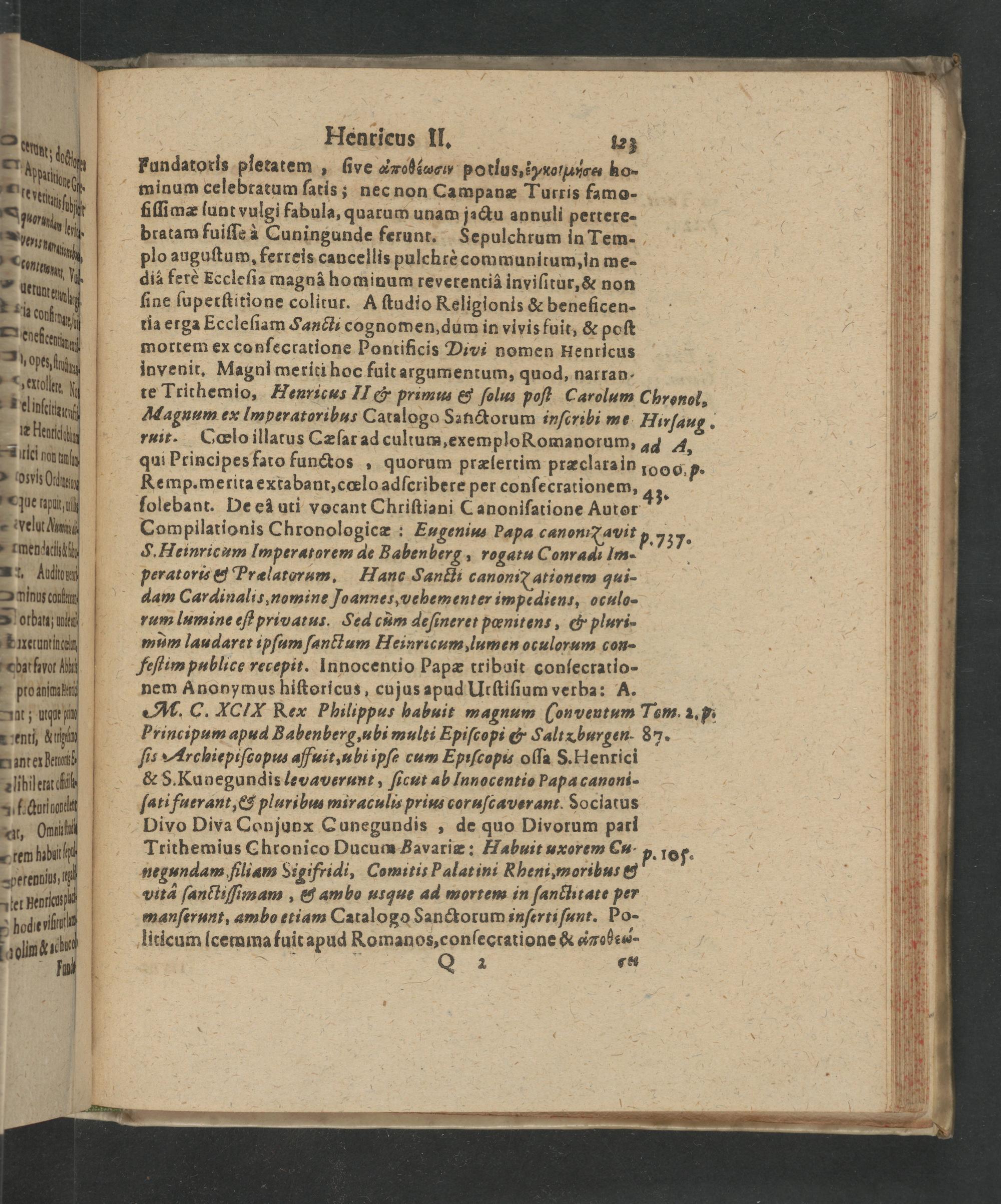 Compilationis Chronologicæ: Eugenius Papa canoni avit„. 737. S. Heinricum Imperatorem de Baben berg, rogatu Conraai Im-