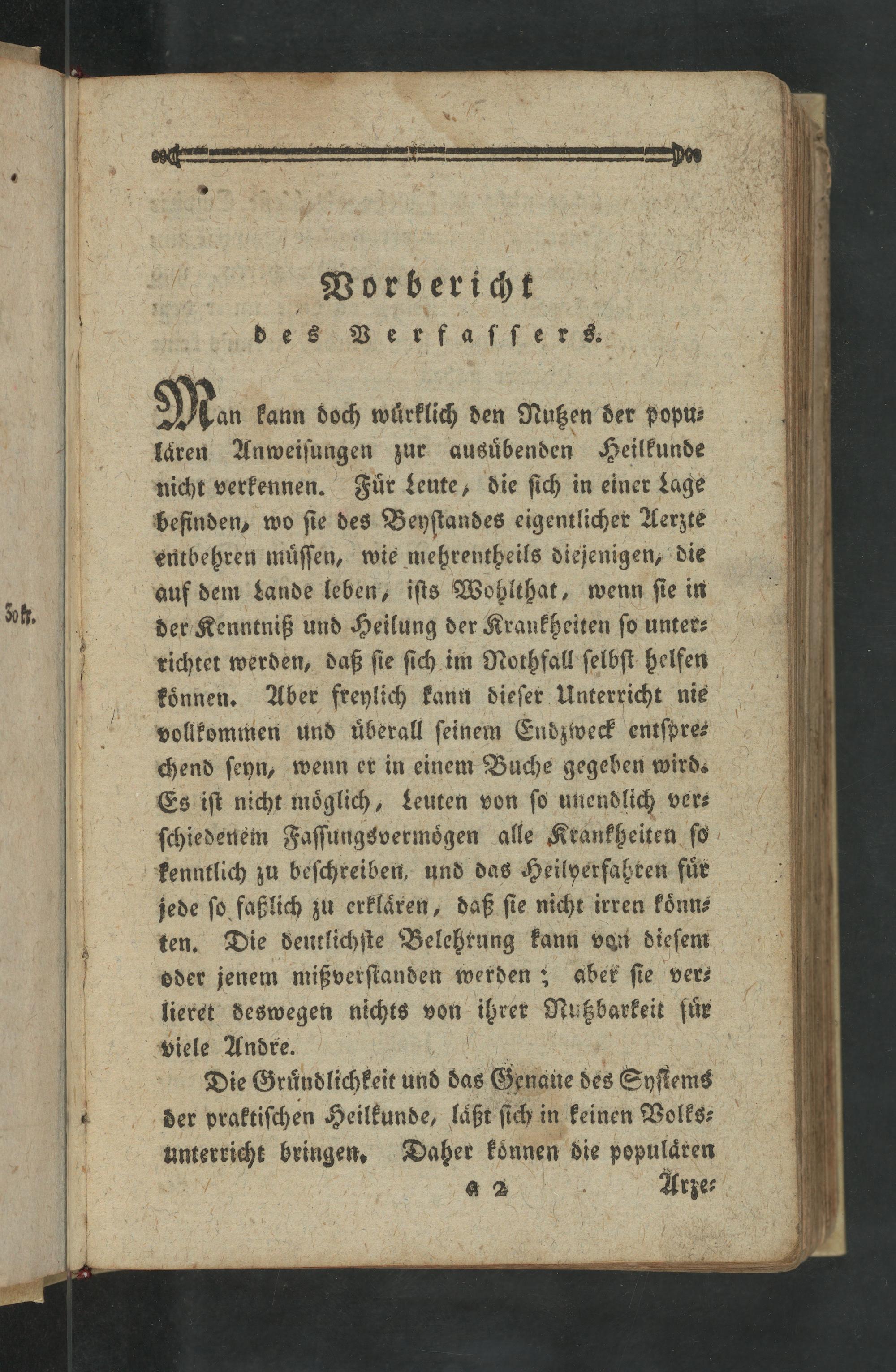 auf dem Lande leben, iſts Wohlthat, wenn ſie in der Kenntniß und Heilung der Krankheiten ſo unter⸗ richtet werden, daß ſie ſich im Nothfall ſelbſt helfen koͤnnen. Aber freylich kann dieſer Unterricht nie vollkommen und uberall ſeinem Endzweck entſpre⸗ chend ſeyn, wenn er in einem Buche gegeben wird. Es iſt nicht moͤglich, Leuten von ſo unendlich ver⸗ ſchiedenem Faſſungsvermoͤgen alle Krankheiten ſo