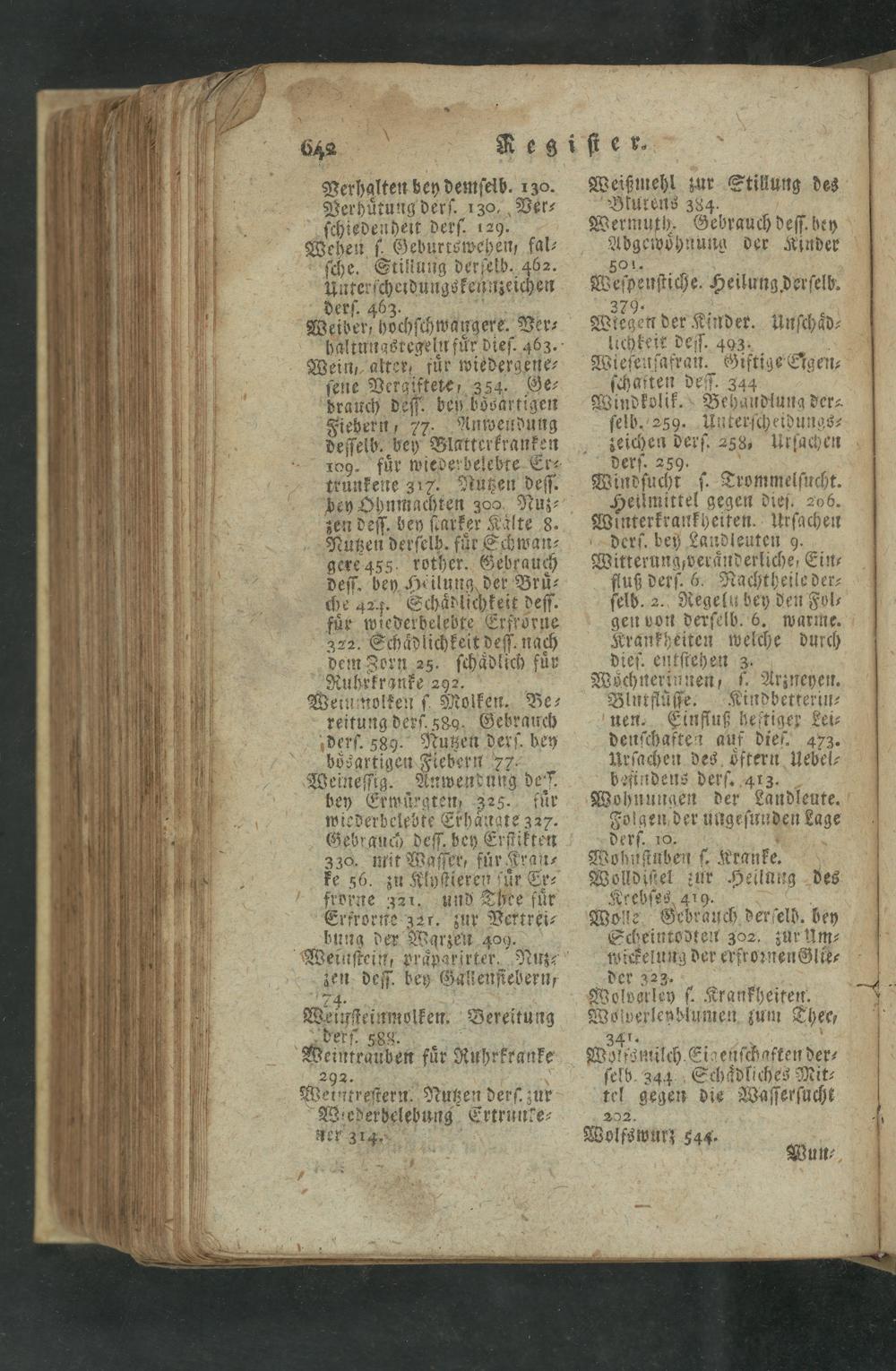 derſ. den Land euten 9. Wittert undden eraͤnderliche, Ein⸗ luß derſ. 6 Nachtheile de r⸗ ſelb. 2. Regelu! bey den Fol⸗ gen von derſelb. 6. warme. Krankheiten welche durch dieſ. entſte hen 3. Woͤchnerinnen,. Arzneyen. Blutfluͤſſe. eindbetterin⸗ uen. Einfluß heftiger Lei⸗ denſchaften auf dieſ. 473. Urſachen des oͤftern Uebei⸗ beſindeus derſ. 413. Wohnunge n der Landleute. Folgen der ungeſunden Lage derſ. 10. Wohuſtuben ſ. Kranke. Walldäſe zur Heilung des