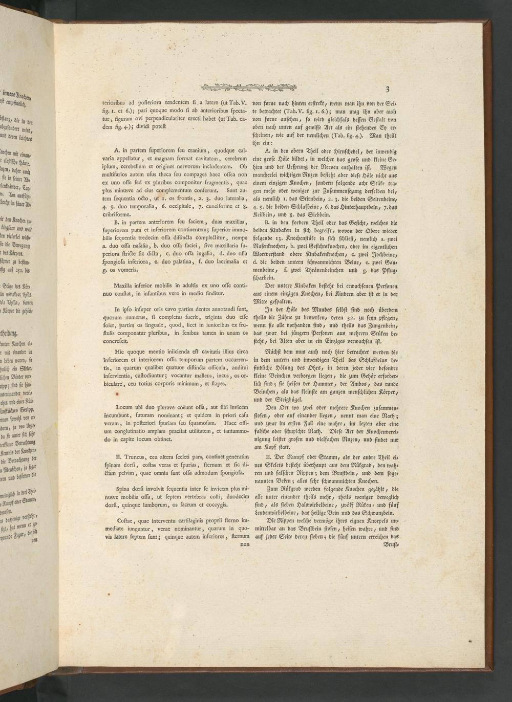 II. Truncus, ceu altera ſceleti pars, continet generatim ſpinam dorſi, coſtas veras et ſpurias, ſternum et ſic di- Gtam pelvim, quae omnia ſunt oſſa admodum ſpongioſa.