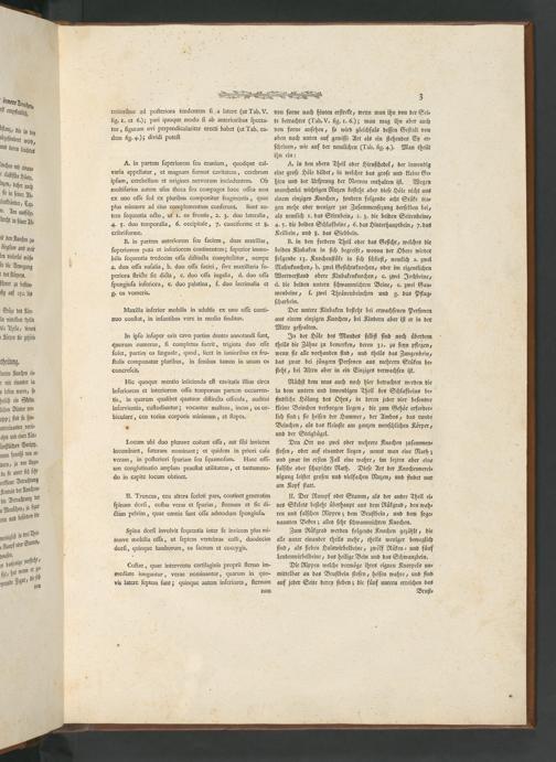 Naͤchſt dem mus auch noch hier betrachtet werden die in dem untern und inwendigen Theil des Schlafbeins be⸗ findliche Hoͤlung des Ohrs, in deren jeder vier beſondre kleine Beinchen verborgen liegen, die zum Gehoͤr erforder⸗ lich ſind; ſie heiſen der Hammer, der Ambos, das runde Beinchen, als das kleinſte am ganzen menſchlichen Koͤrper, und der Steigbuͤgel.