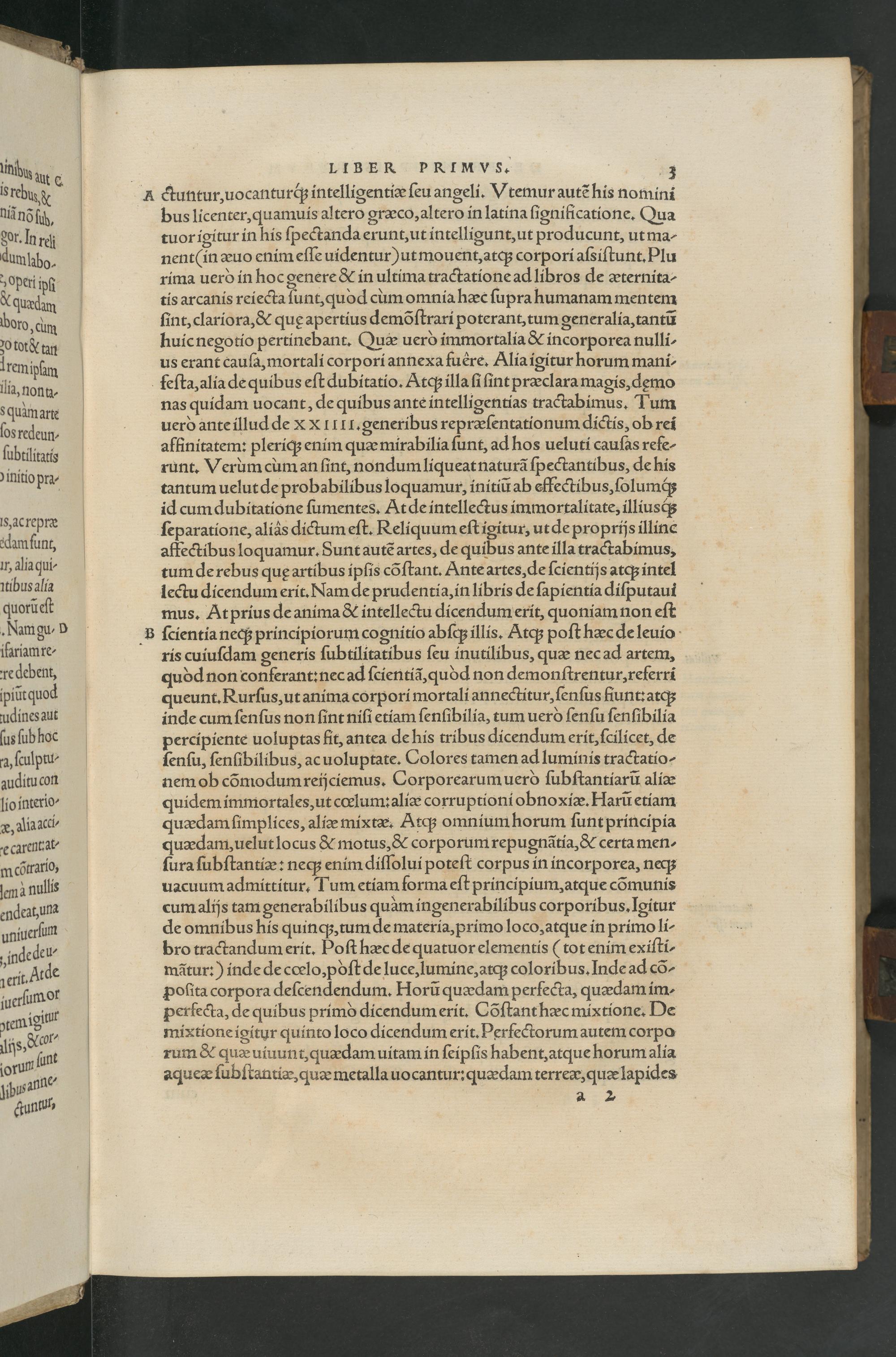 ris cuiuſdam generis ſubtilitatibus ſeu inutilibus, quæ nec ad artem, quòd non conferant:nec ad ſcientiã, quòd non demonſtrentur, referri queunt. Rurſus, ut anima corpori mortali annectitur, ſenſus fiunt: atq; inde cum ſenſus non ſint niſi etiam ſenſibilia, tum uerò ſenſu ſenſibilia percipiente uoluptas fit, antea de his tribus dicendum erit, ſcilicet, de ſenſu, ſenſibilibus, ac uoluptate. Colores tamen ad luminis tractatio- nem ob cõmodum reijciemus. Corporearum uerò ſubſtantiarũ aliæ quidem immortales, ut cœlum: aliæ corruptioni obnoxiæ. Harũ etiam quædam ſimplices, aliæ mixtæ. Atq; omnium horum ſunt principia quædam, uelut locus& motus,& corporum repugnãtia,& certa men-