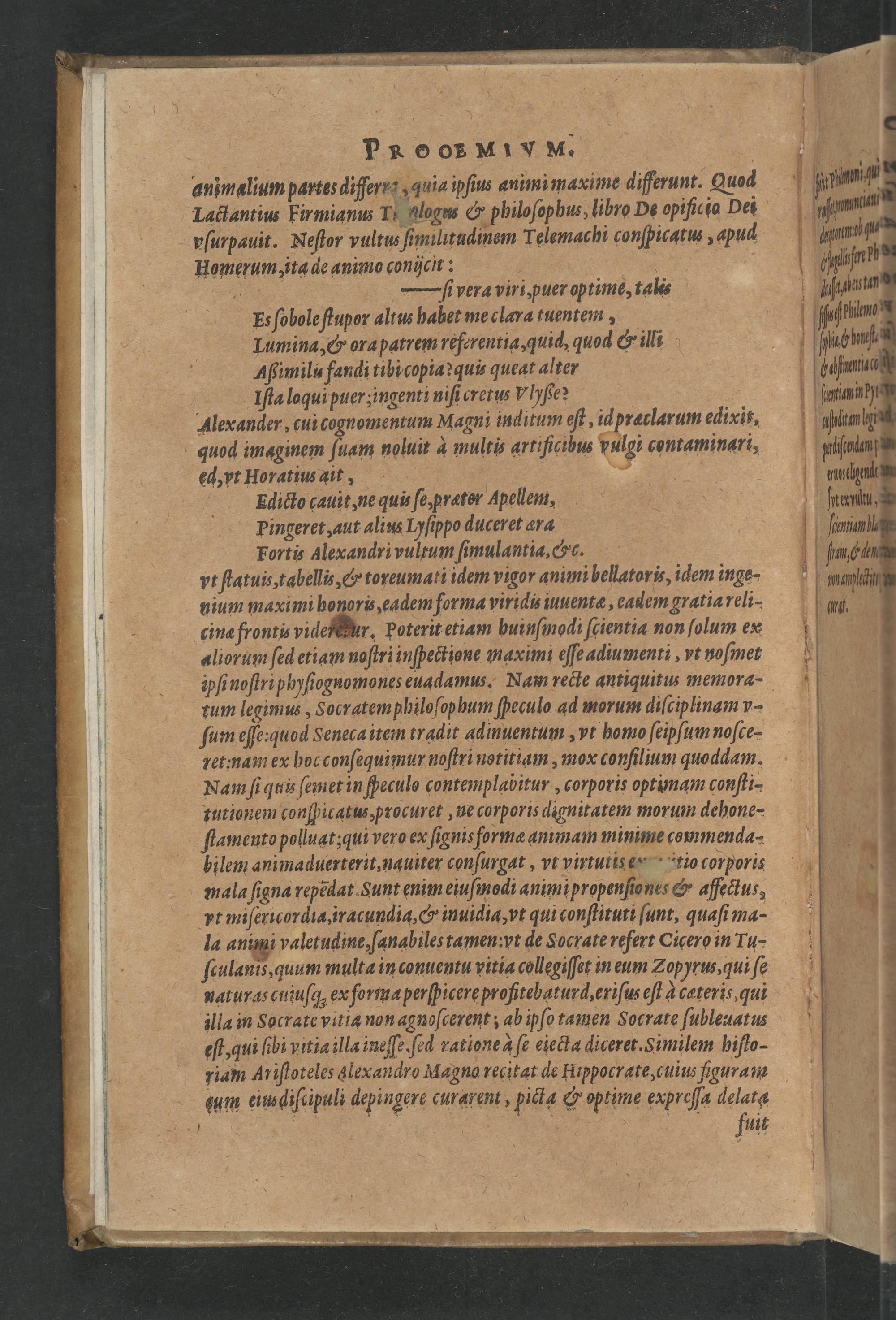 Lactantius Firmianus TII Alogas& philoſophus, lihro De opificia Dei r ſurpauit. Neſtor vultus ſinulitadinem Telemachi conſpicatus apud
