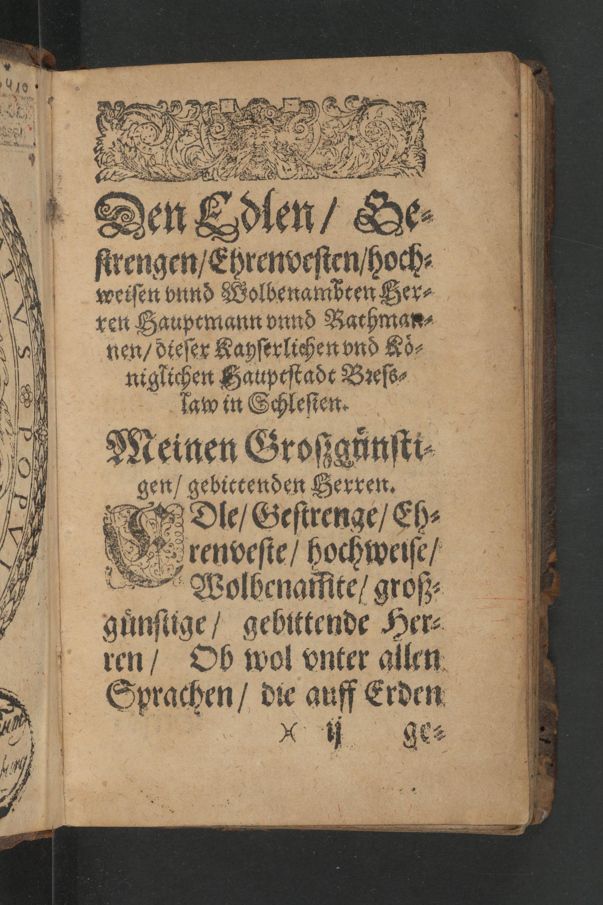 frengen /hrenveſten boch⸗ weiſen bund Wolbenamdten Her⸗ ren Hauptmann vnnd Bathman⸗ nen/ dieſer Kayſerlichen vnd Koͤ⸗ niglichen Hauprſtadt Bꝛeſs⸗ law in Schleſten.