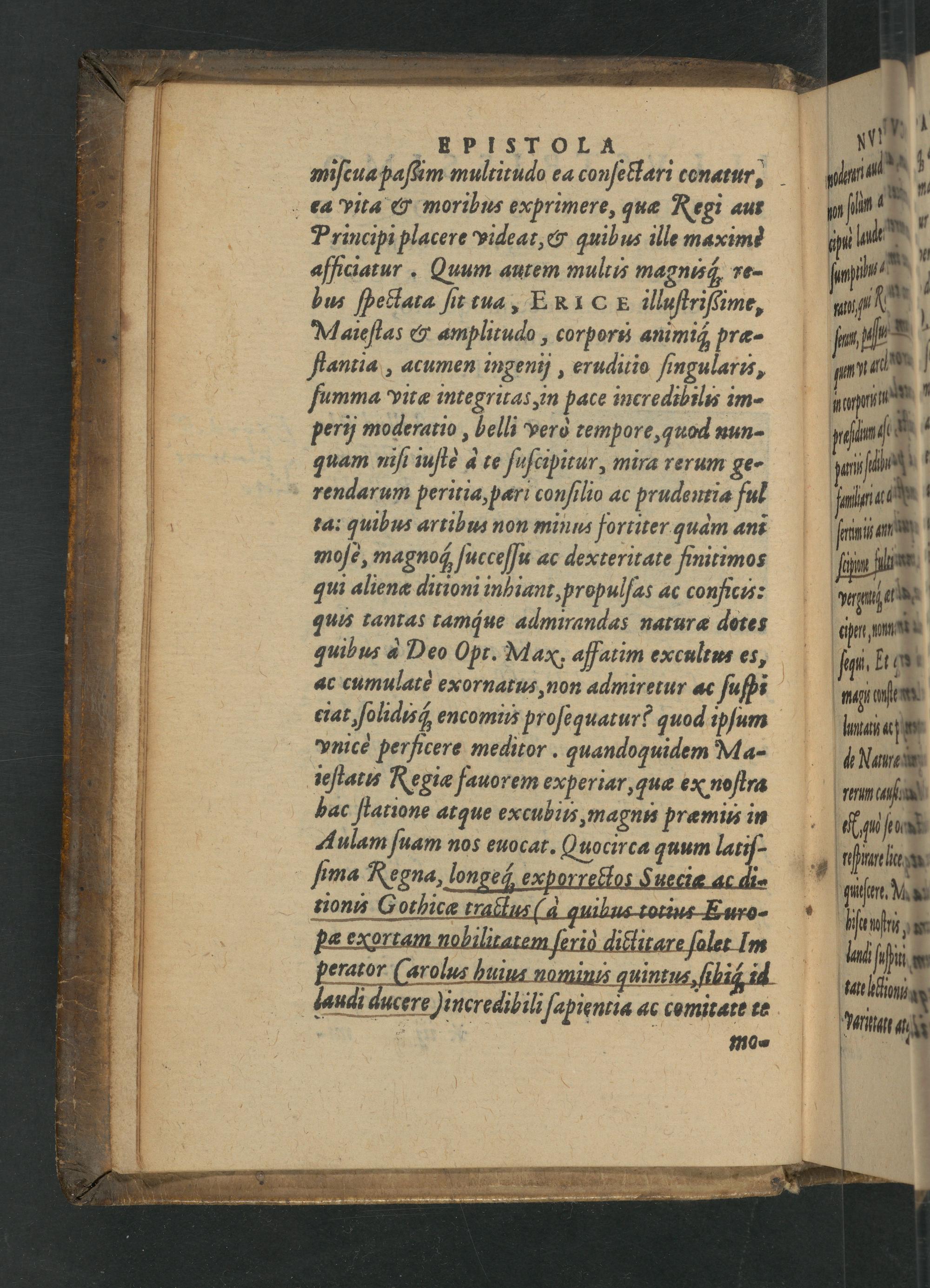 bus ſpettata ſit tua, ERICE illuſtrißime, Maieſtas& amplitudo, corporu animiq præ- ſtantia, acumen ingenij, eruditio ſingularu, ſumma vita integritas, in pace incredibilu im- perij moderatio, helli yerò tempore, quod nun- quam niſi iuſtè à te fuſcipitur, mira rerum ge- rendarum peritia, pæri conſilio ac prudeutia ful ta: quibus artihus non minns fortiter quam ani moſe, magnos; ſucceſſu ac dexteritate finitimos qui aliena ditioni inbiant, propulſas ac conficu: quis tantas tamque admirandas naturæ dotes quibus d Deo Opt. Max. aſfatim excultus es, ac cumulate exornatus, non admiretur ac ſuſbi eiat, folidis; encomiis proſe quaturéi quod ipſum ynice perficere meditor. quandoquidem Ma- ieſtatis Regia fauorem experiar, quæ ex noſtna bac ſtatione atque excubils, magnus pramius in