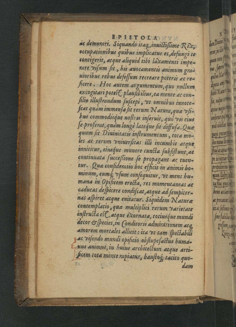 excogitari poteſt plaußl ilius, ea mente ac con- Hllis illuſtraudum ſuſcepi, yt omnibus innote- ſcat quam immenſa ſit rerum N arura, quæ ßi- bus commodisque noſtrus inſeruit, Qud yus eiu⸗ ſe profenat, quam longe lateque fit diſfuſa. Quæ guum ſit Diuinitatus inſtrumentum„tota mo- les ac rerum vniuerfttas illi incumlbit at- us. innititur, einachue munere cunita huhb ſiſtunt, ac continuata ſucceſcione ſê propagant ac tuen- tur. Qua confideratio hoc efcit in animur ho- minum, eumq yſum conſe quitur, vt mens hu- mana in Opifteem ereita, res momentaneas ac caducas deſpicere condiſcat, atque ad ſempiter- uas aſpiret atque enitatur.& iquidem Naturæ contemplatio, Juæ multiplici rerum yarietate inſtructa ef, atque exornata, totiusque mundi decor&ſpecies, in(onditoru admirationem at amorem mortales allicit: ita yt tam Hectabili ac viſendo mundi opifacio obſtupefaitus huma- nuus animus, in buius architectum atque arti- Acem tota mente mpiatur, bauſto tacito quo- 4 b dam
