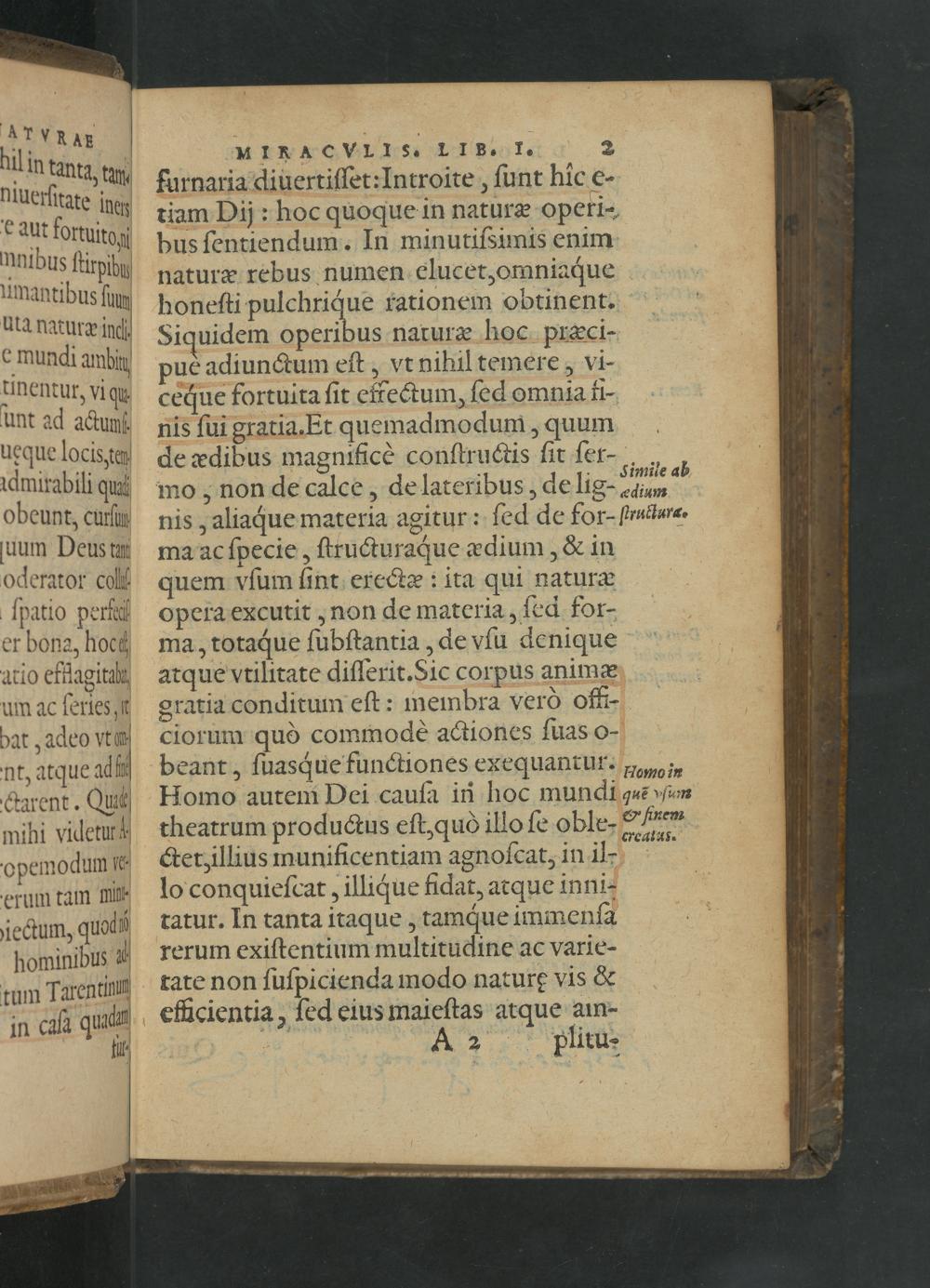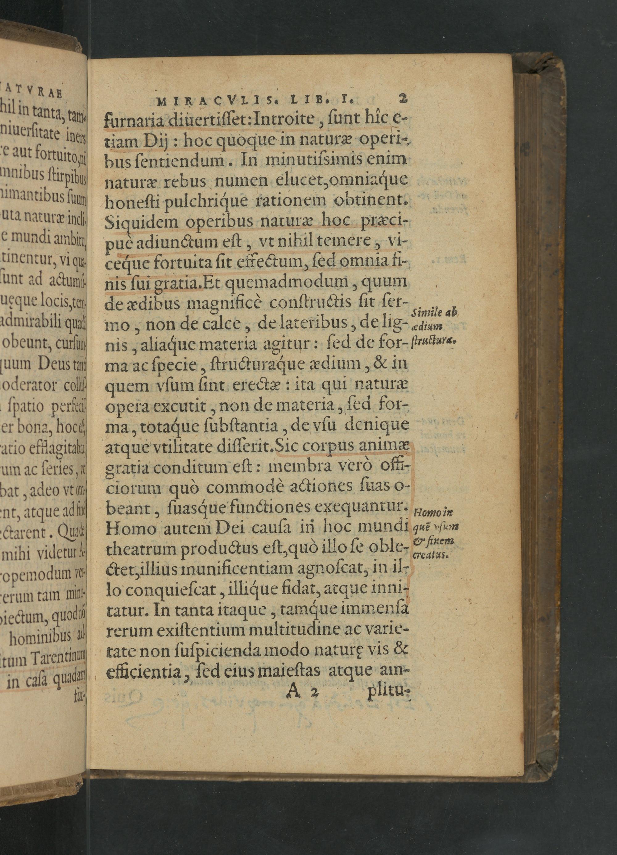 MIRACVIIS. I118. 1. 2 furnaria diuertiſſet: Introite, ſunt hic e- tiam Dij: hoc quoque in naturæ operi- bus ſentiendum. In minutiſsimis enim naturæ rebus numen elucet, omniaque honeſti pulchrique rationem obtinent. Siquidem operibus naruræ hoc præci-