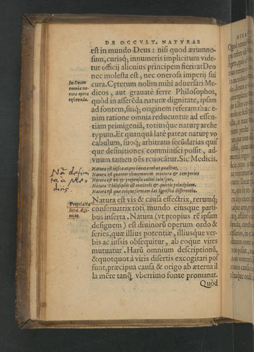 pdnoccvIr. NATVYRAR eſt in mundo Deus: niſi quod ærumno- ſum, curisq́; innumeris implicitum vide- tur officij alicuius principem fieri: at Deo nec moleſta eſt, nec oneroſa imperij ſui m peum cura. Cęterum nolim mihi aduerſari Me- omnia ad-... turæ open dicos, aut grauatè ferre Philoſophos, nfareuda. quòd in aſſerẽda naturæ dignitate, ipſam ad fontem, ſuiq́; originem referam: hac e- nim ratione omnia reducuntur ad eſſen- tiam primigeniã, totiusque naturę arche typum. Er quanquã latè pateat naturę vo