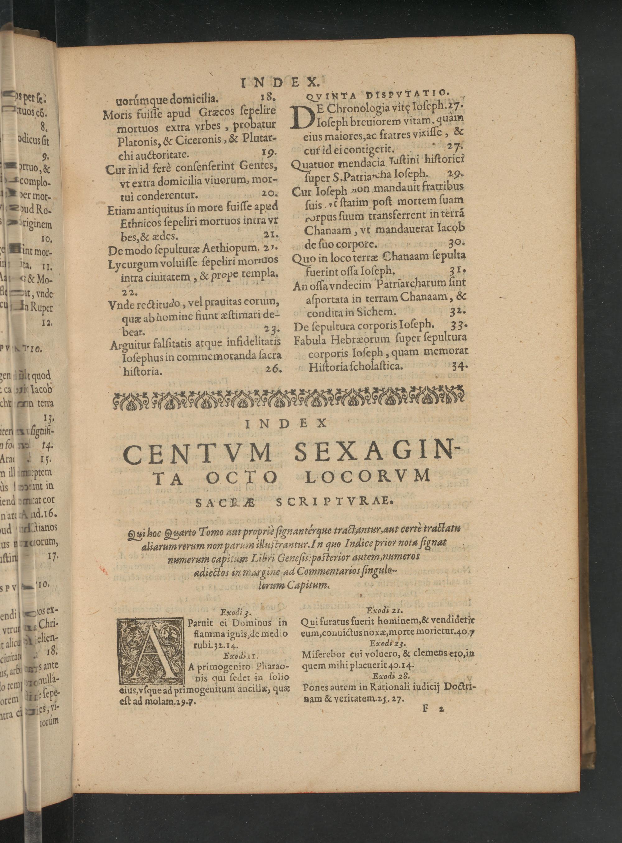 Qui hac Quarto Tomo aut propris ſagnantérque trattantur, aut certè tratatu aliarum rerum non paruin ilustrantur. In quo Indice prior nota ſignat numerum capitum Libri Geneſis: posterior autemmumeéros