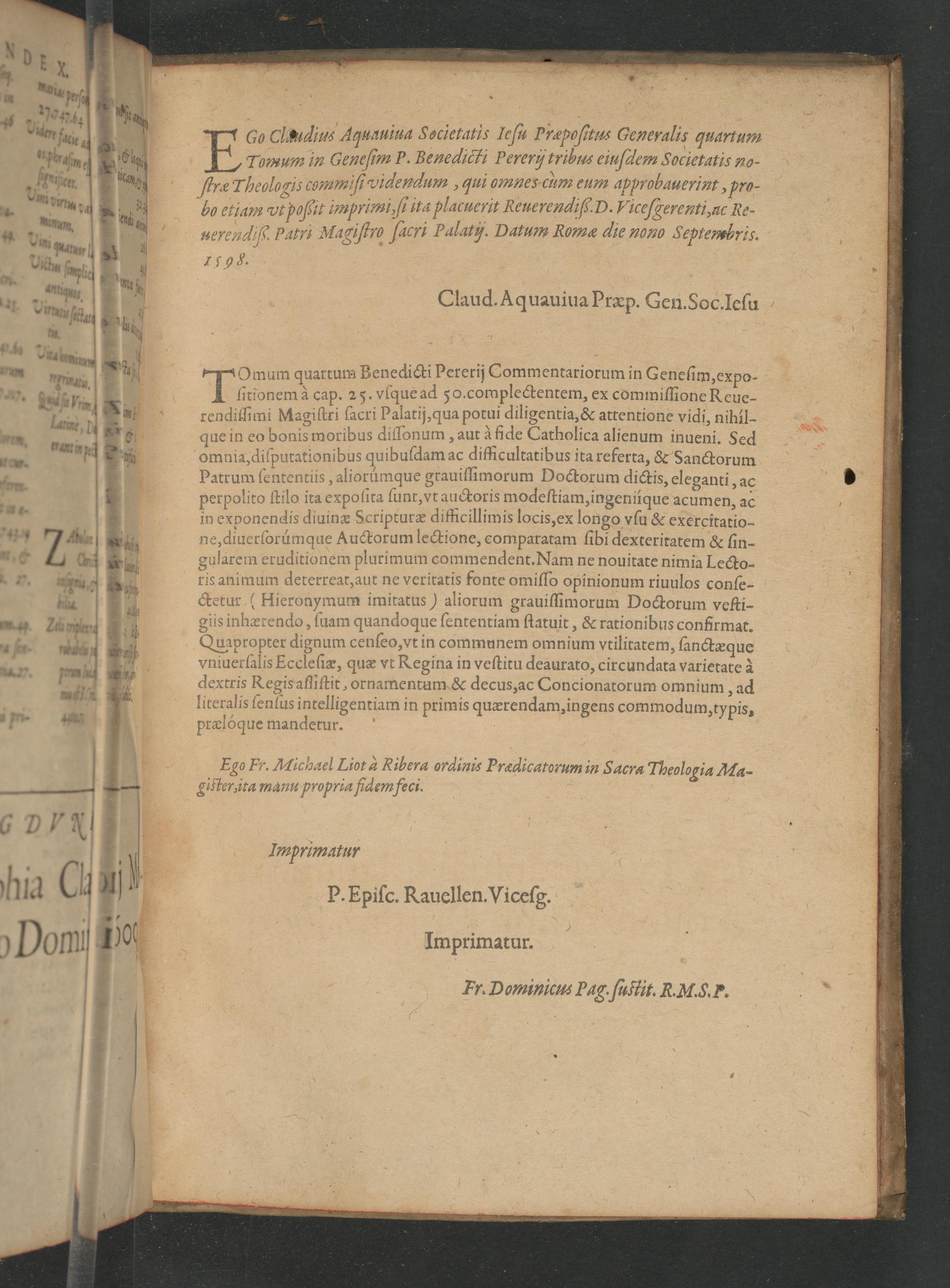 Ego Fr. Michael Liot a Ribera ordinis Prædicatorum in acra Theologia Ma- gicter, ita manu propria fidem feci.
