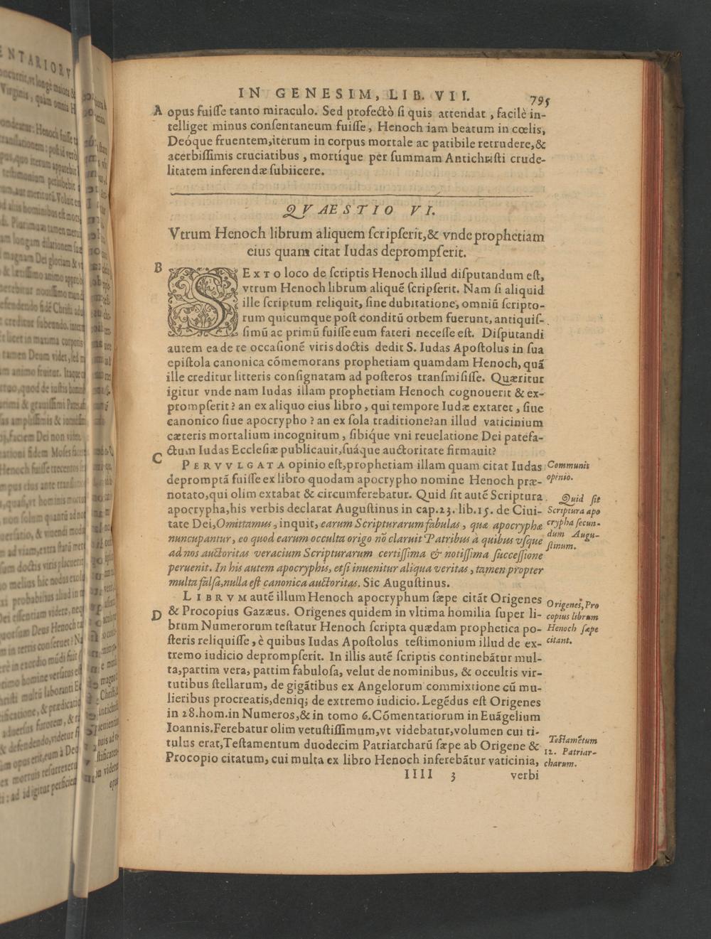 ExToO loco de ſcriptis Henoch illud diſputandum eſt, g vtrum Henoch librum aliquẽ ſcripſerit. Nam ſi aliquid D ille ſcriptum reliquit, ſine dubitatione, omniũ ſcripto-