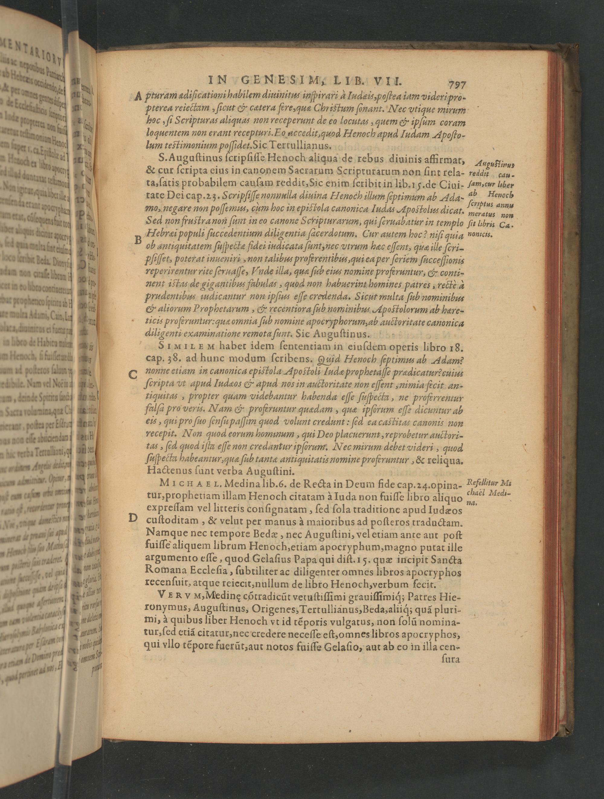 1N GENESIM, IL. IB. VII. 797 A pturam ædificationi habilem dininitus inſpirari à Iudaæis, poſtea iam videri pro- pterea reiettam, ſiout& cætera fére, quæ Christum ſonant. Nee vtique mirum hHoc, ſi S cripturas aliquas non receperunt de eo locutas, quem& ipſum coram loquentem non erant recepiuri. Eo accedit, quod Henoch apud Iudam Apoſto- lum testimonium poſſidet. Sic Tertullianus. S. Auguſtinus ſcripſiſſe Henoch aliqua de rebus diuinis affrmat, Aupuftinus & cur ſcripta eius in canonem Sacrarum Scriprurarum non ſint rela- reddit cau- tasſatis probabilem cauſam reddit, Sic enim ſcribit in lib. 1 5. de Ciui- Jam, cur liber tate Dei cap. 23. Seripſiſſe nonnulla dinina Henoch illum ſeptimum ab Ada- 74 enoeh mo, negare non poſſemus, cum hoo in epiftola canonica Iudas Apostolus dicat. waedes aune Sed non frustra non ſunt in eo canone Scripturarum, qui ſoruabatur in templo ſit libris Ca. Hebræi populi ſuccedentium diligentia ſäcerdotum. Cur autem hoc? niſi quia nonicts. ob antiquitatem ſuſpedlæ fidei indicata ſunt, nec vtrum haæc eſſent, qua ille ſeri- Pſiſſet, poterat inneniri, non talibus proferentibus, qui ea per ſeriem ſucceſſionis reperirentur rite ſeruaſſe, Vnde illa, quæ ſub eius nomine proferuntur,& conti- nent istas de gigantibus fabulas, quod non habuerint homines patres, reutsè à prudentibus iudicantur non ipſius eſſe credenda. Sicut multa ſub nominibus & aliorum Prophetarum,& Tecentiora ſub nominibus Apostolorum ab hære- ticis profèruntur: quæ omnia ſub nomine apocryphorumab austoritate canonica diligenti examinatione remota ſunt. Sic Auguſtinus. SIMIILEM habet idem ſententiam in ciuſdem operis libro 18. cap. 38. ad hunc modum ſcribens. Quid Henoch ſeptimus ab Adams C nonne etiam in canonica epistola Apostoli ludæ prophetaſſe pradicaturlcuius ſoripta vt apud Iudæosᷣ apud nos in auktoritate non eſſent nimia Fécit an- tiquitas, propter quam videbantur habenda eſſe ſuſpectæ, ne proferrentur fulſa pro veris. Mam& proféruntur quædam, quæ ipſorum eſſe dicuntur ab eis, qui pro ſuo ſenſu paſſim quod volunt oredunt: ſed ea castitas canonis non recepit. Non quod eorum hominum, qui Deo placuerunt, reprobetur autlori- tas, ſed quod iſta eſſe non credantur ipſörum. Nec mirum debet videri, quod ſuſpecta habeantur, quæ ſub tantæ antiquitatis nomine proſeruntur,& reliqua. Hactenus ſunt verba Auguſtini.