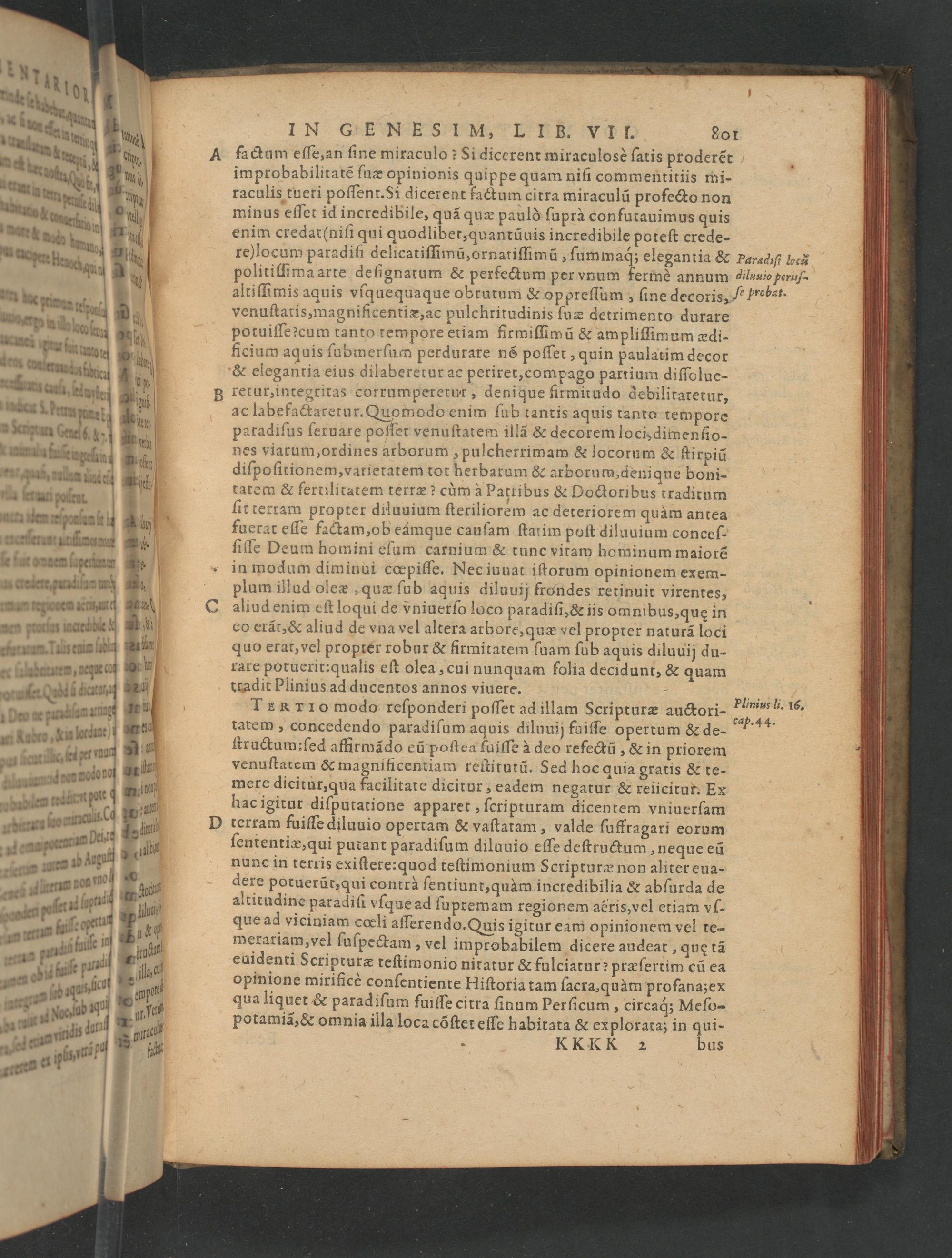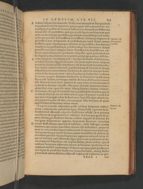 tradit Plinius ad ducentos annos viuere.— IERTIO modo reſponderi poſſet ad illam Scripturæ auctori- tatem, concedendo paradiſum aquis diluuij fuiſſe opertum& de- ſtructum: ſed affirmãdo eũ poſtea fuiſſe à deo refectũ„Rx in priorem venuſtatem& magnificentiam reſtitutũ. Sed hoc quia gratis& te- mere dicitur, qua facilitate dicitur, eadem negatur& reiicirur. Ex hac igitur diſputatione apparet, ſcripturam dicentem vniuerſam terram fuiſſe diluuio opertam& vaſtaram, valde ſuffragari eorum ſententiæ, qui putant paradiſum diluuio eſſe deſtructum, neque eũ nunc in terris exiſtere: quod teſtimonium Scripturæ non aliter eua- dere potuerüt, qui contrà ſentiunt, quàm incredibilia& abſurda de altitudine paradiſſi vſque ad ſu premam regionem aëris, vel etiam vſ- que ad viciniam cœli aſſerendo. Quis igitur eam opinionem vel te- merariam, vel ſuſpectam, vel improbabilem dicere audeat, que tã euidenti Scripturæ teſtimonio niratur& fulciatur? præſertim cũ ea opinione mirificè conſentiente Hiſtoria tam ſacra, quàm profana;ex qua liquet& parad iſum fuiſſe citra ſinum Perſicum, circaq; Meſo- Potamia,& omnia illa loca cõſtet eſſe habitata& ex plorata; in qui- KKKK 2 bus