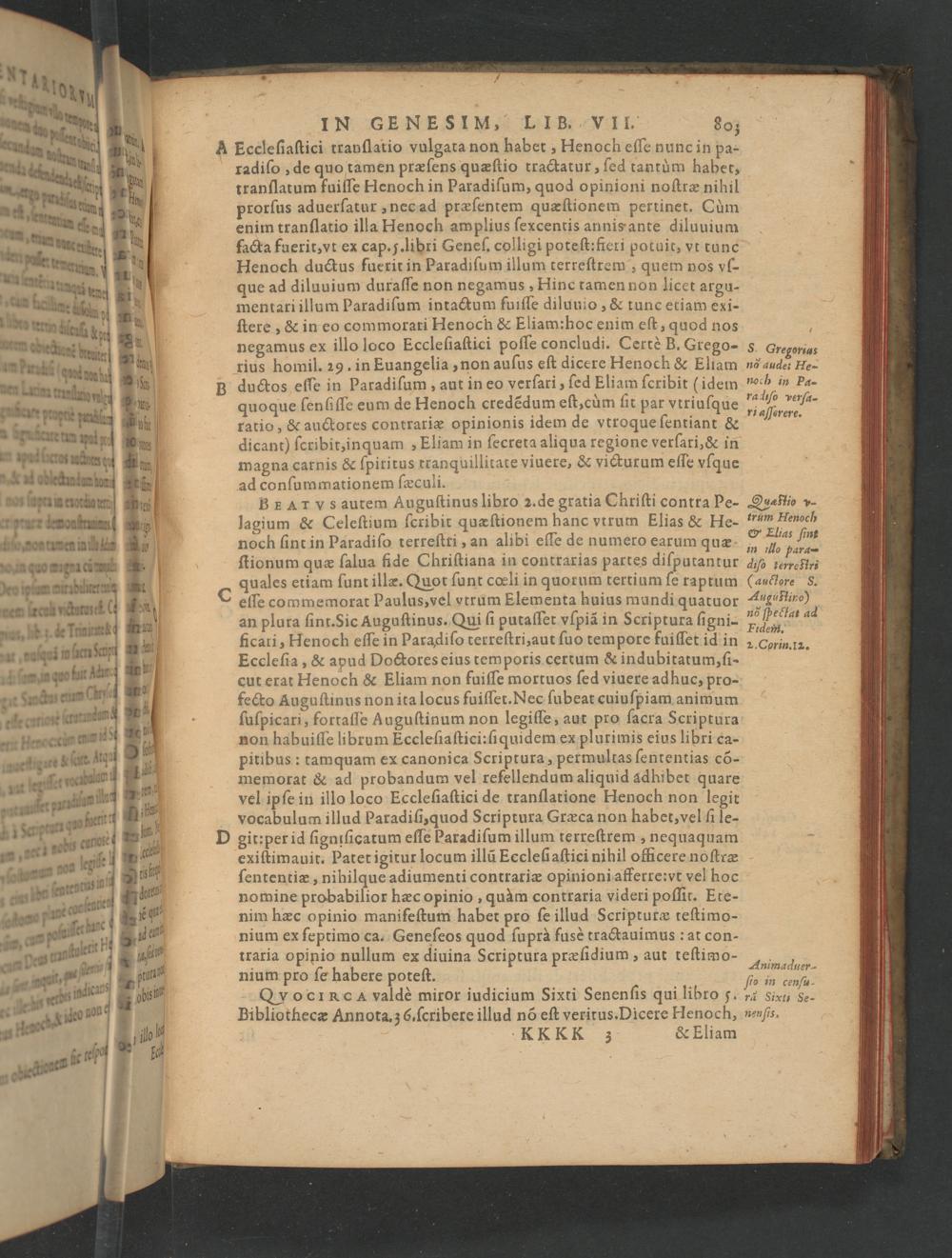 nium pro ſe habere poteſt. QvoclRcA valde miror iudicium Sixti Senenſis qui libro 5. Bibliothecæ Annota. 3 6. ſcribere illud nõ eſt veritus. Dicere Henoch, KKKK z& Eliam