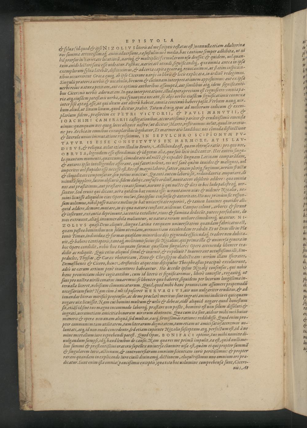 uerbi reiue natura petitam, æut ex optimus authoribus aſſumptä, aut ſimilibus atq, idem ſign icanti- pus Ciceronuw uerbir adornatam. In qua interpretationc,illud operæprecium cogn oſereromniapa- ria atg eiuſdlem potehlarts uerba, quæ hnonyma uocant yhic alijs êer bis eiuſdem hion Ihcationu connéxæ inter ſeſe aptaq; eſſé,ut qui unum aut alteri habeat, oninia continuõò habere poßit. Verbum nang, uer- hum aliud, ut linum linum, quod dicitur, trabit. Totum denigq opus ad meliorum codicum&exem- plarium ſdem, praſertim ex pETRIVICTORII,& PaVLI MANVTII, G 1OACHIMI CAMERARII caſtigationibus, accuratiſßimuis pariter cx eruditißims emcnda