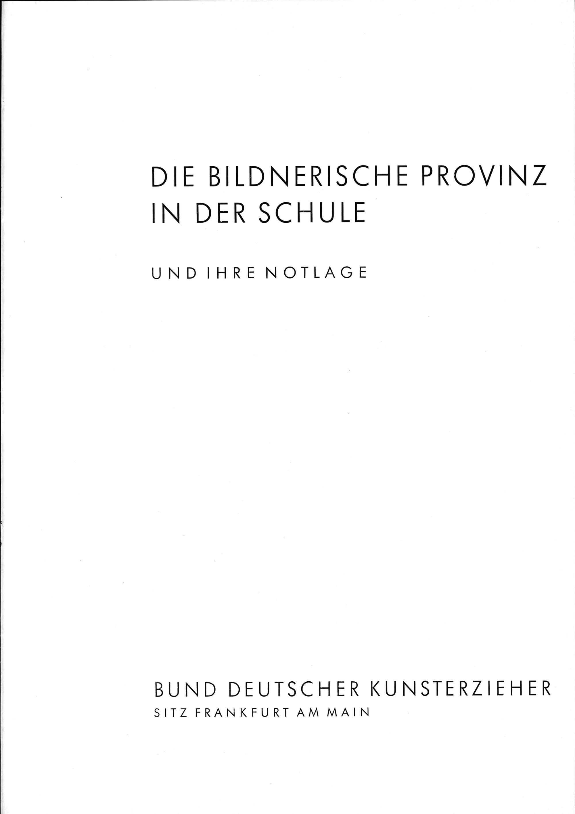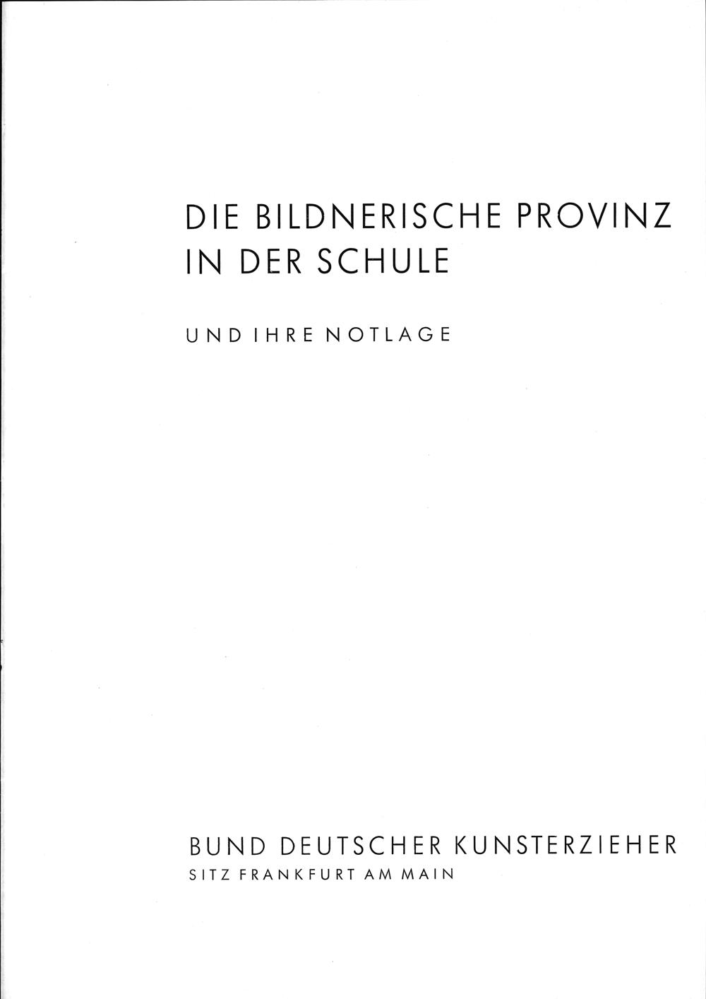 ODIE BILDNERISCHE PROVIN7Z NDER SCHULE UNDIHRENOTIAGE BUND DEUTSCHER KUNSTEKRZIEHER SITLZFRANKFURTAMMAIN