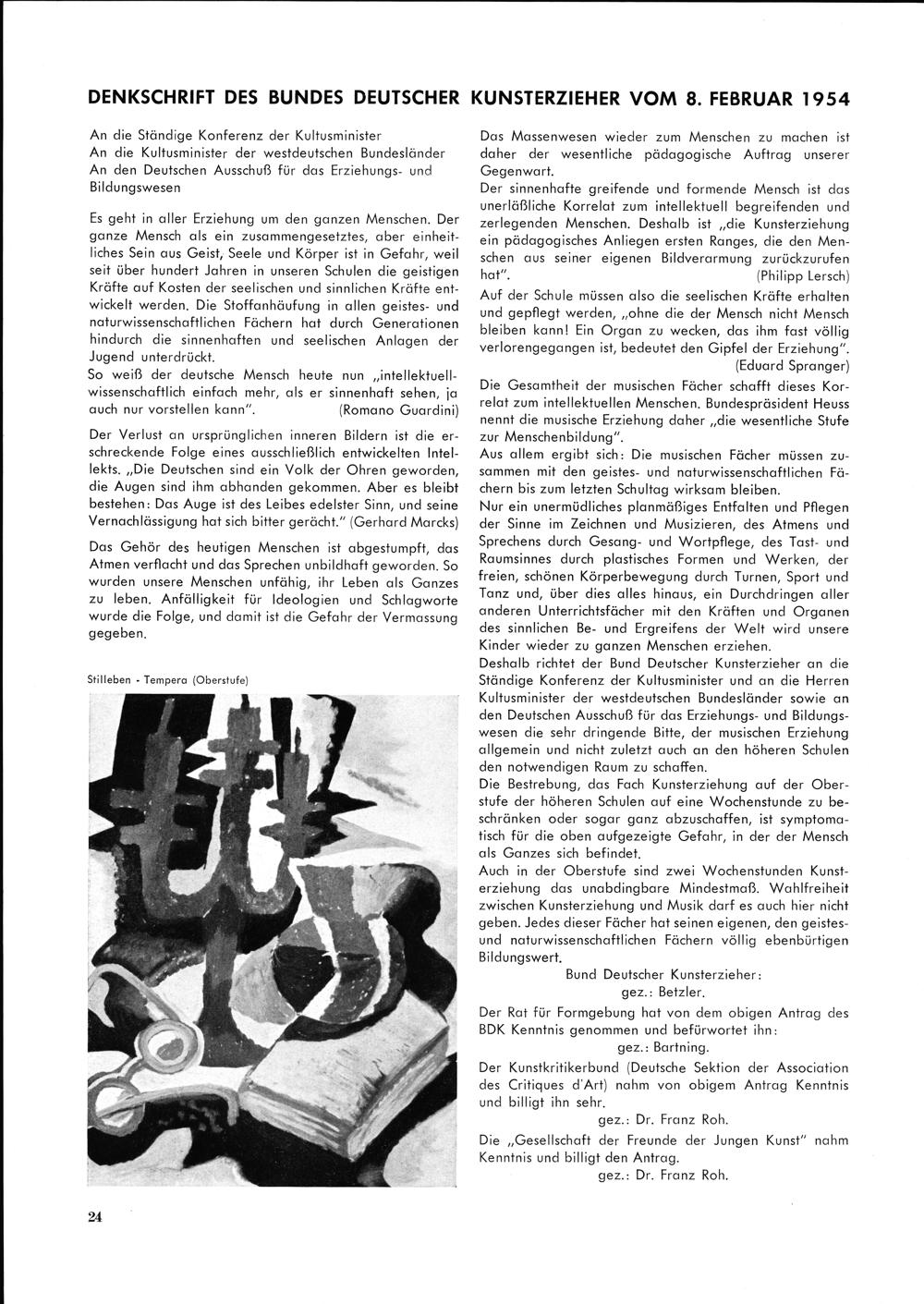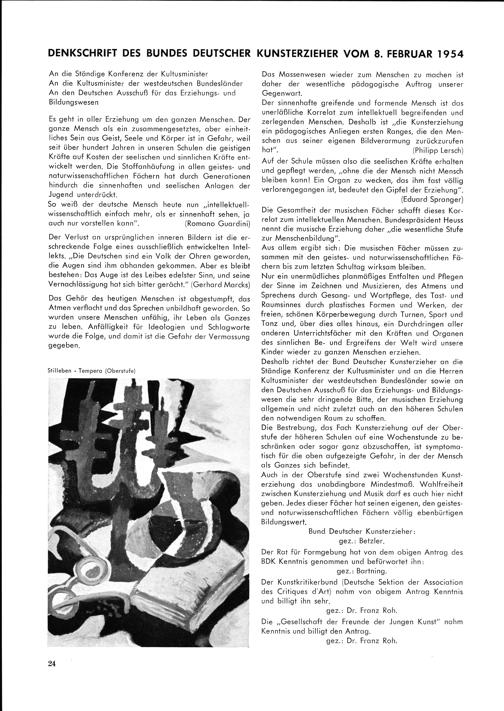 DENKSCHRIFT DES BUNDES DEUTSCHiER KUNSTERZIEHER VOM 8. FEBRUAR 1954