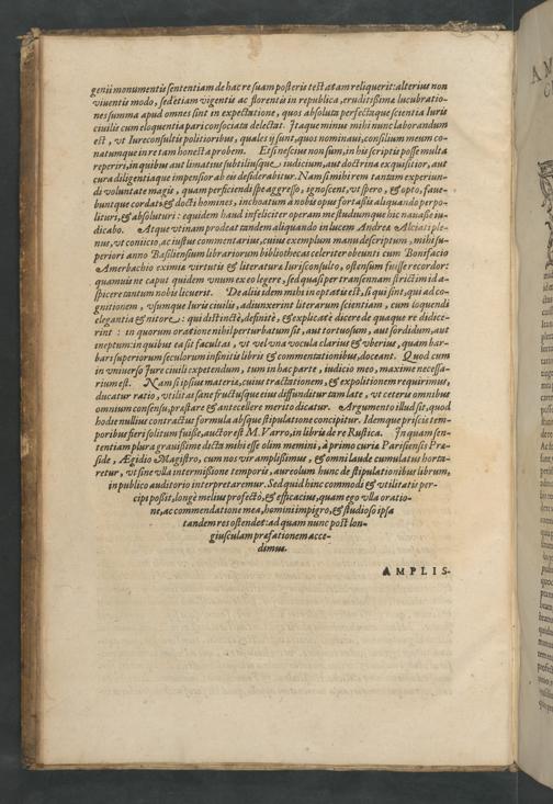 buntque cordats ꝰ docti homines, inchoatum aànobus opus fortaßis aliquando perpo- lituri,& abſoluturi: equidem haud infeliciter operam meſtudiumque hic nauaße iu- dicabo. Atque vtinam prodeat tandem aliquando inlucem Andres Alciatiple- nur, vt coniicio, ac iuſtus commentarius, cuius exemplum manudeſcriptum mihiſu- periori anno Baſilienſium librariorum bibliothocas celeriter obeunti cum Bonifacio AOdAm erbac hio evximia vuirtutis 65 literat urd I. uriſc onſult 0., oſt enſum fuiſſe reco ydorr quamuii ne caput quidem vnum ex eo legere, ſed quaſiper tranſennam ſirictimid a- ſpicerenantum nobis licuerit. De aliis dem mihn in optatus eſt, ſi qui ſint, qui ad co- gnitionem, vſumque luris ciuilu, adiunxerint literarum ſcientiam, cum loquendi elegantia tõ nitor: qui qutinctè, definiteè,&explicarè dicerede quaque re didice- rint: in quorum oratione nihilperturbatumſit, aut tortuoſum, aut ſordidum, aut