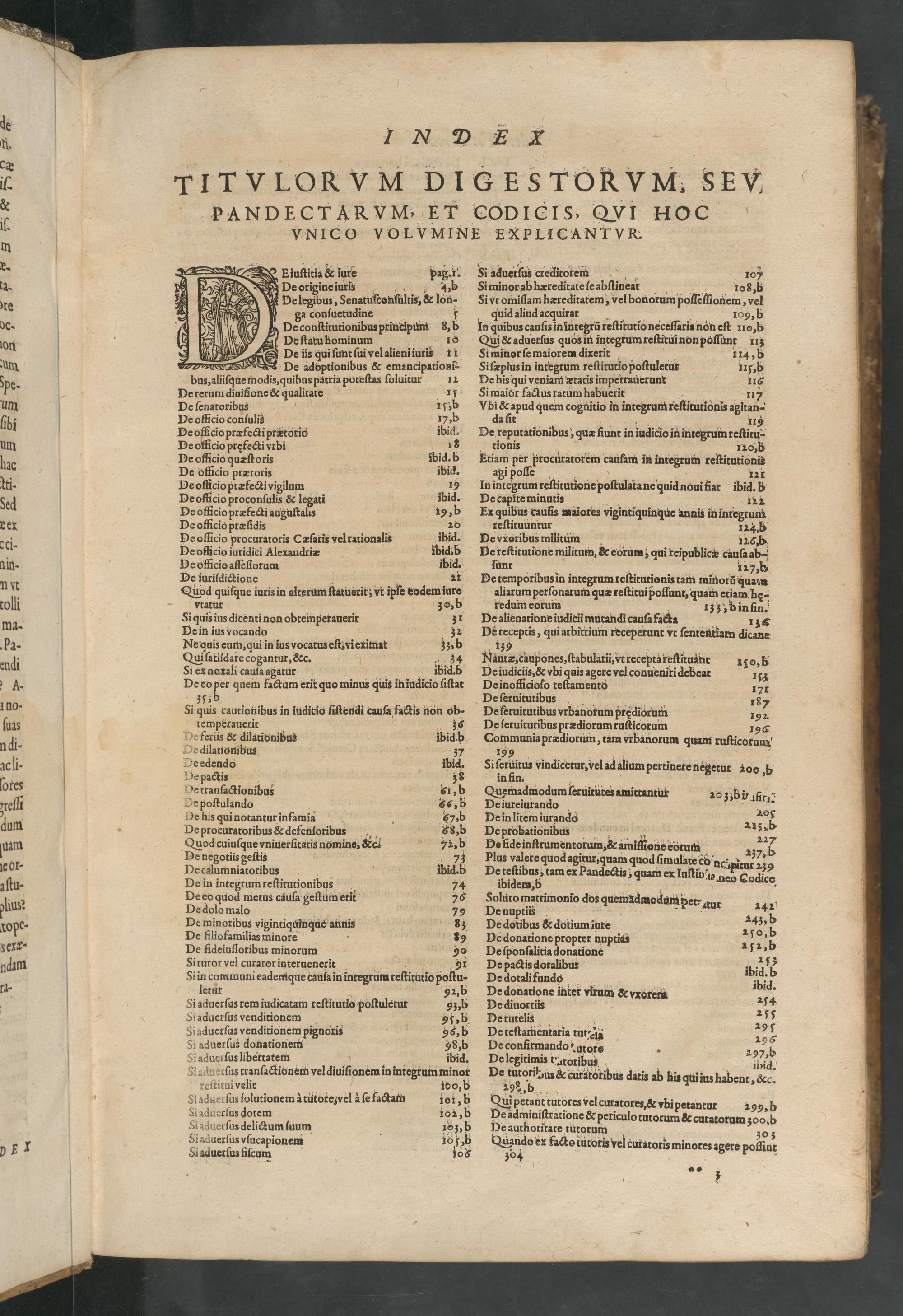 De rerum diuiſi ione& qualitate 1 De ſenatoribus 1ſ5b De officio conſulis b 17,b De officio præfecti prætoriò ibid. De officio prefecti vrrbi 18 De officio quæſtoris ibid. b De officio prætoris ſibia. De officio præfecti vigilum 17 De officio proconſulis& legati b ibid. De officio præfecti auguſtalis 19: b De officio præſidis 20 De officio procuratoris Cæſaris vel rationaks ibid. De officio iuridici Alexandria ſbbick b De officio aſſeſſorum ibid. Pe iuriſdictione 21 Quod quiſque iuris in Krerum aruerit; nt ipſe eodem iure vtatur 30, b Si quis ius dicenti non obtempetauerit 31 De in ius vocando 32² Ne quis eum, qui in ius vocatus eſtsvi eximat 33, b Quiſatiſdare cogantur,&c. 34 Sie e4 Lnorali cauia aSatur üLid.b