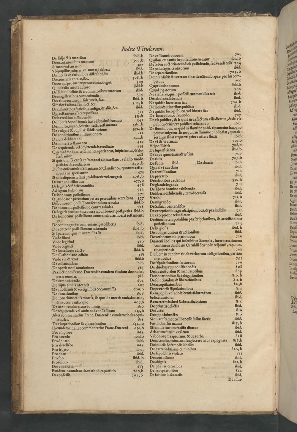 ter aqua fluat atque vti priore æſtate fluxit ibid. De vi& vi armata 707,b Vti poſſidetis 70⁰8, b De ſuperficiebus ibid. b De aqua quotidiana& æſtiua 7⁰09 Deriuis 709, b De fonte ibid. Decloacis ibid. Quod vi aut clam ibid. Deremiſſionibus 710 De precario ſibid. De arboribus cædendis b 710, b Deglandelegena 1 71 De libero homine exrhibendo ibid.