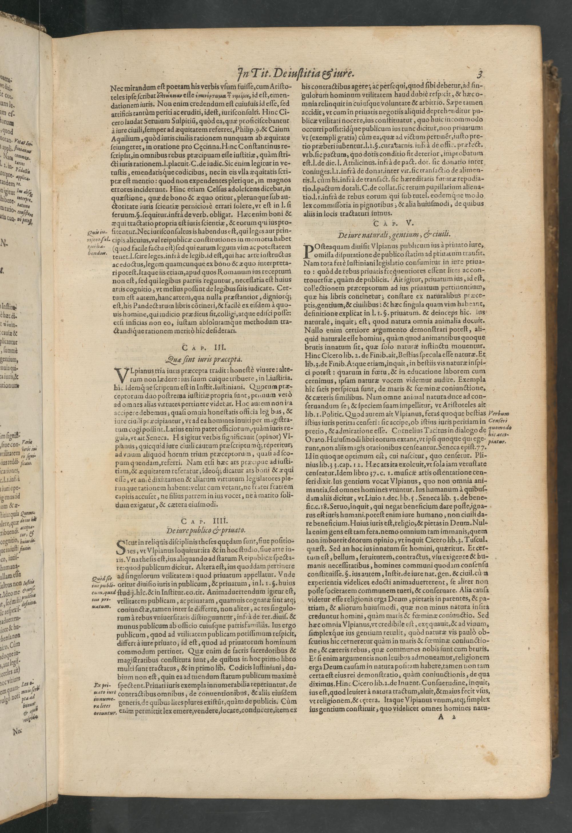 Deiure naturali, gentium,& ciuili. HDoOſteaquam diuiſit VIpianus publicum ius àprinato iure, omiſla diſpuratione de publico ſtatim ad ptiuatuin tranſit. Nam tota ferè Iuſtiniani legislatio conſumirur in iure priua-