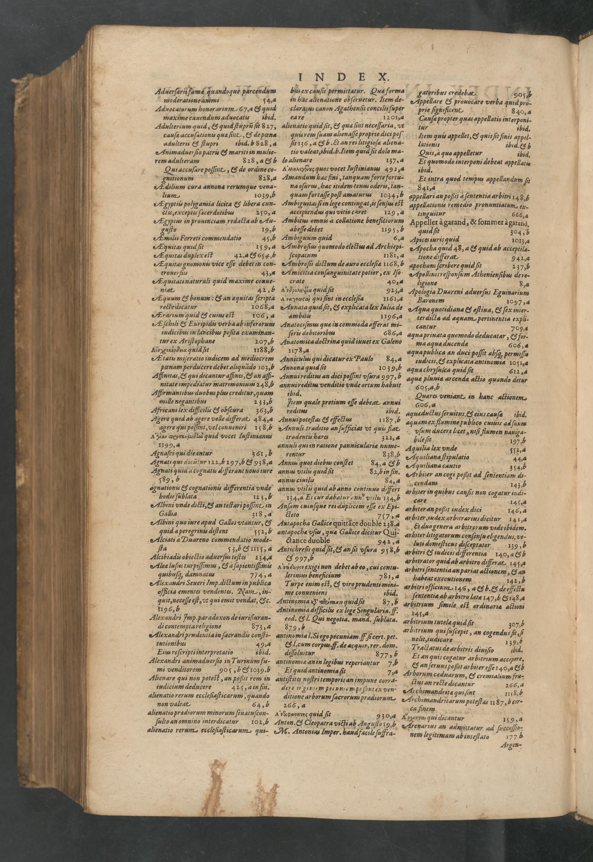 nitionum 828,4 acm cura annona rerumque vena- lium 109, 5 Agyptii⸗ pohgamia licita& libera cun- etu excepits ſacerdotibus 20, 4 Agypius in prouinctam redatta ab Au- guſto 15, 6 Aumilis Ferreti commendatio 4ſ,b Equitas quid ſit 19, 4 A quitas duplexeſt 42, 4& 652,9 quitas gnomonis vice ele debet in con- rrouer ſius 4;,4 Aquitatinaturali quid maxime conue. niat. 14 22, 4
