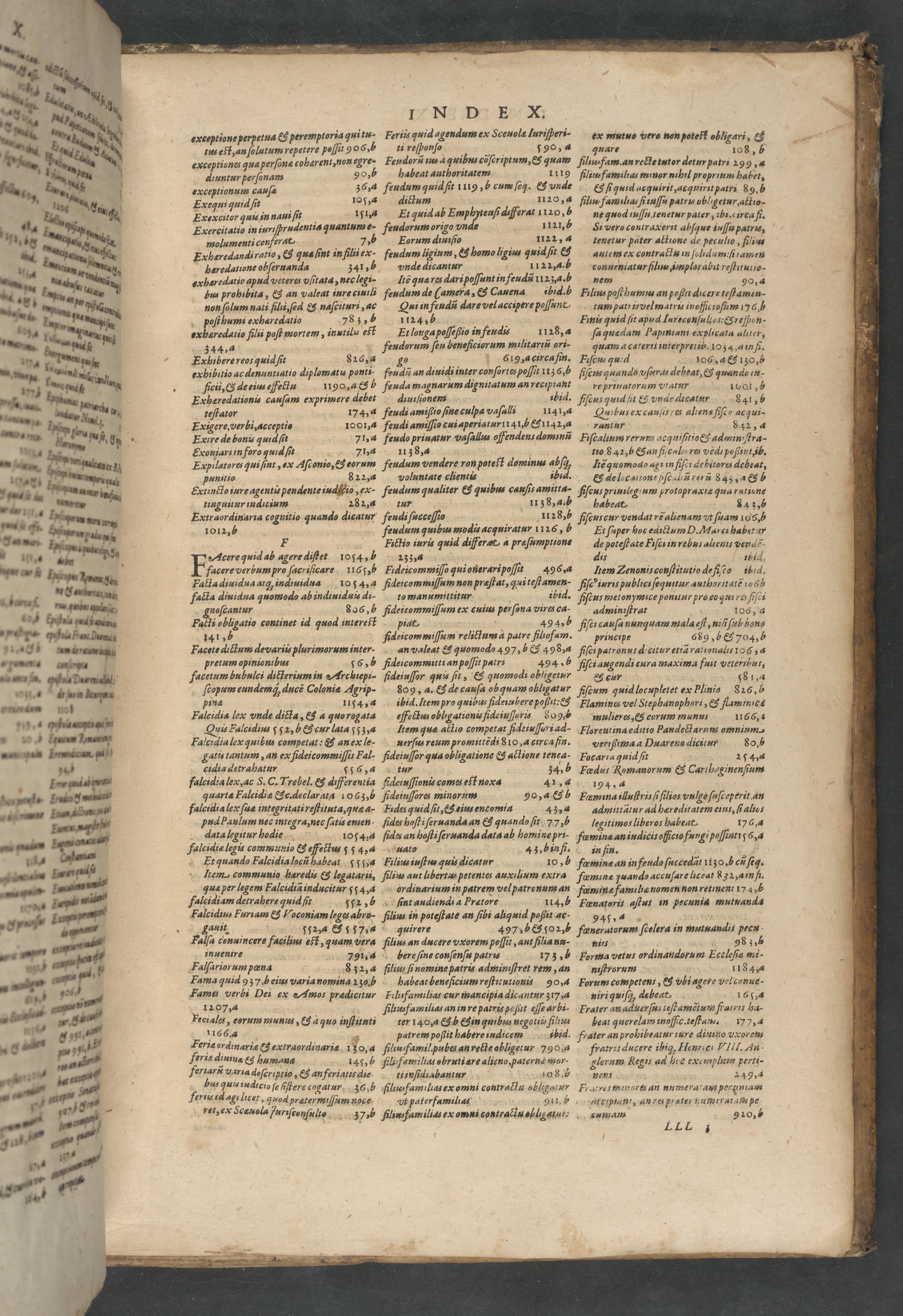 tus eſt, an ſolutum repetere poſſit 9 06 5 ti reſonſo 590, 4 exceptiones qua perſonæ coherent, non qgre., Feudoru ius à 7uibus cõſcriptum,& quam diuntur perſonam 90,56 habeat authoritatem 1419 exceptionum cauſæ 36,4 feudum quid ſit 1119, b cum ſc¹. 85 vnde Exequi quid ſt 105,3 dictum m20,⸗ Exexcitor quis in naui ſit 15⁴ Et quid ab Lnu uuus diſferat 1120, 6 Exercitatio in iuriſprudentia quantum e- feudorum origo vnde 1121,6 molumenti conferat. 7,5 Eaorum diuiſio 1122, 4