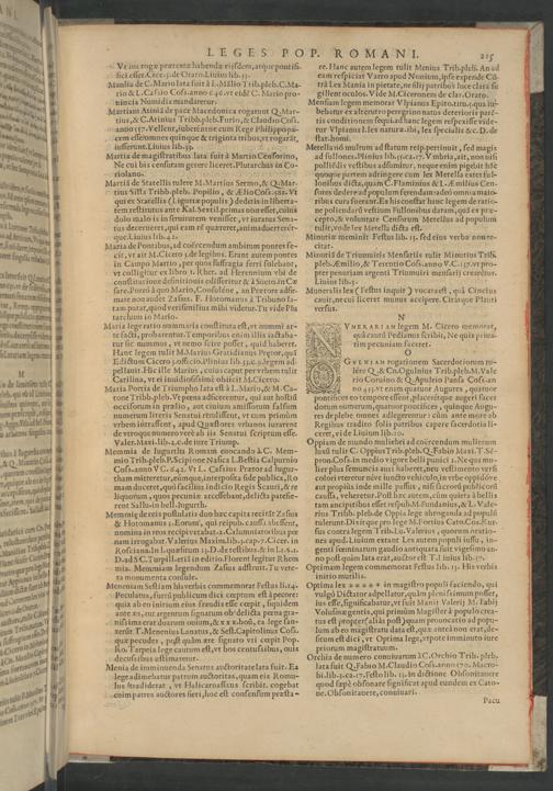 NVt ius togæ prætextæ habendæ eijſdem, atque pontifi- ſici eſſet. Cice.ʒ.de Orato. Liuius lib. 5. Manlia de C. Mario lata fuit à L. Mälio Trib. pleb. C. Ma- rio& L. Ca ſsio Coſs. anno 4 6. vt eidé C. Mario pro- uincia Numidia mandaretur. Martiam Atiniã de pace Macedonica rogarunt Q. Mar- tius,& C. Atinius Tribb. pleb. Furio,& Claudio Coſs. nanno 757.Vellent, iuberéntne cum Rege Philippopa- cem eſſeꝛomnes quinque& triginta tribus, vt rogarãt, iuſſerunt. Liuius lib.z5. 1 A. Martia de magiſtratibus lata fuit à Martio Cenſorino, Ne cui bis cenſuram gerere liceret. Plutarchus in Co- riolano..—
