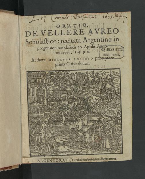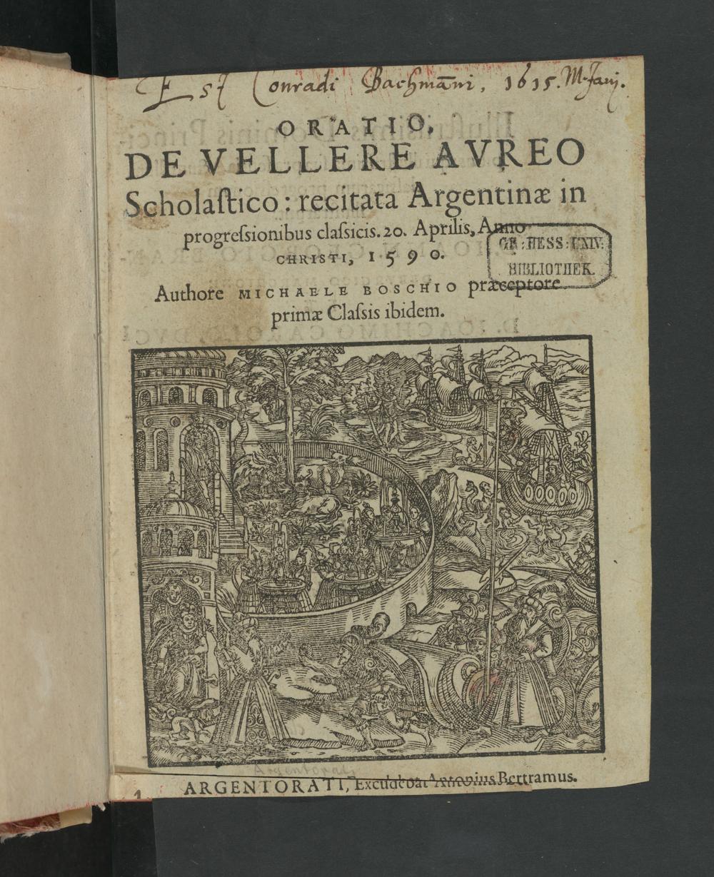DE VELLERE AVREO Scholastico: recitata Argentinæ in 8 progressionibus classicis. 20 Aprilis, me . RIS TI, 15 9 0.