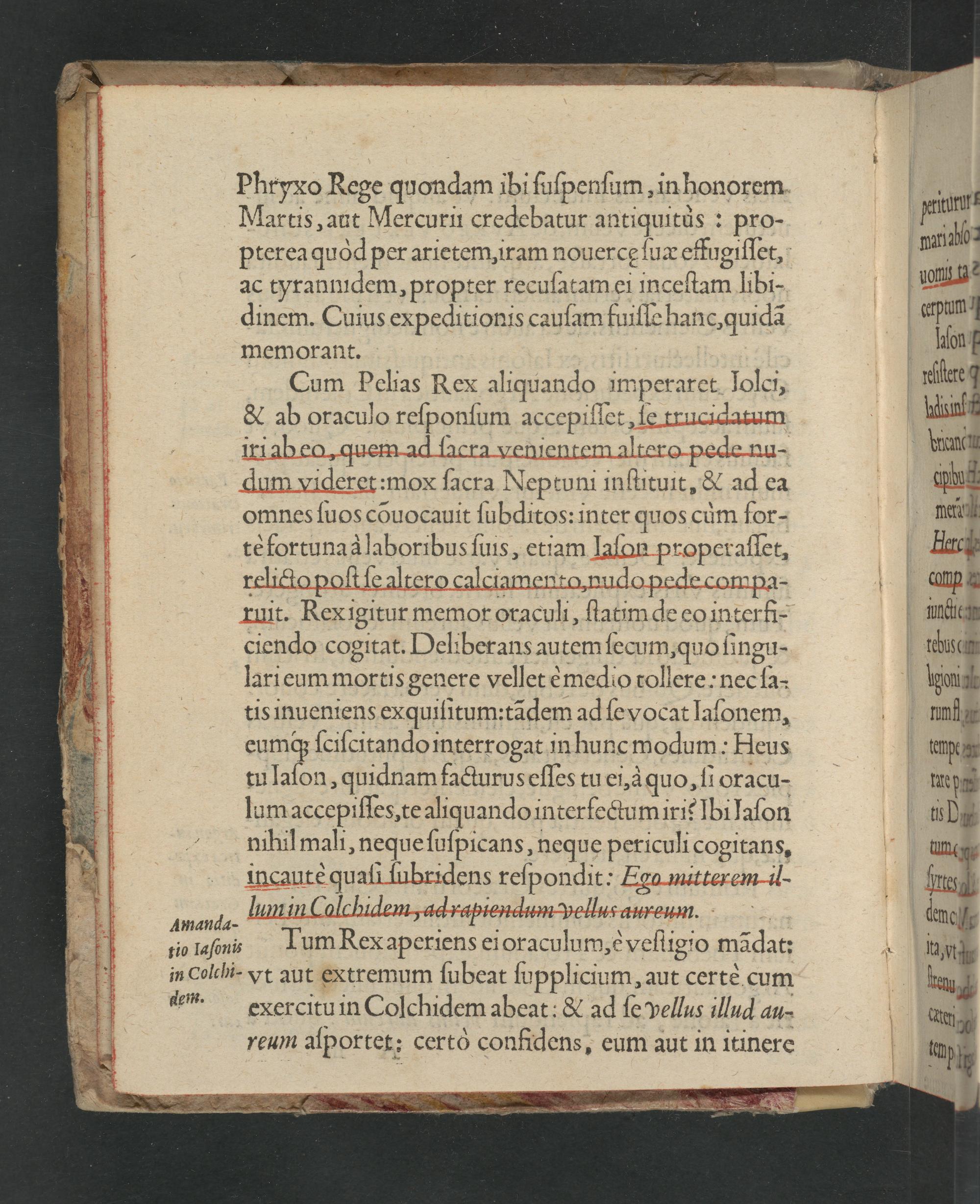 Tum Rex aperiens ei oraculum, ꝭ vestigio mãdat: aut certè cum exercitu in Colchidem abeat:& ad 1 Pellus illud au- reum alportet; certò confidens, eum aut in itinere