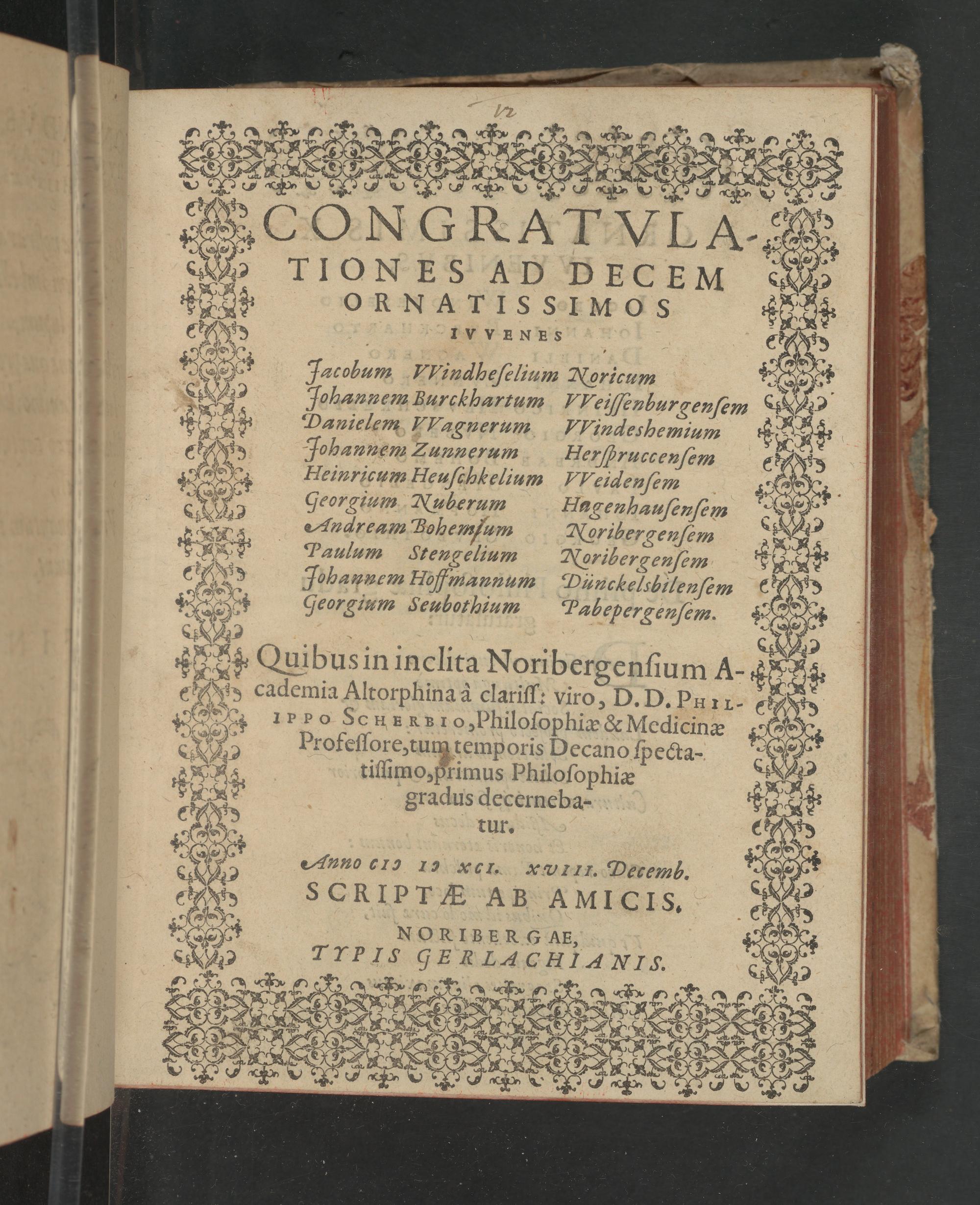 6 585 o cademia Altorphina à clariss: viro, D. D. Pa 1 180 IPPO SCHRERR BIO Philosophiæ& Medicinæ 895 Professore, tum temporis Decano specta- 2815 tissimo, Primus Philosophiæ