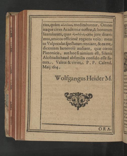 tura. Valete& vivite. P. P. Calend. Maij 1614.