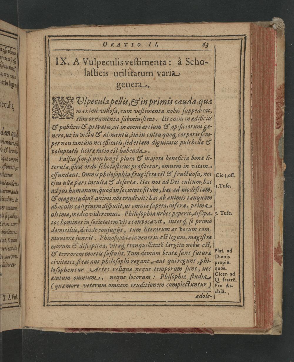 IX. A Vulpeculis vestimenta: à Scho- lasticis utilitatum varia genera-.