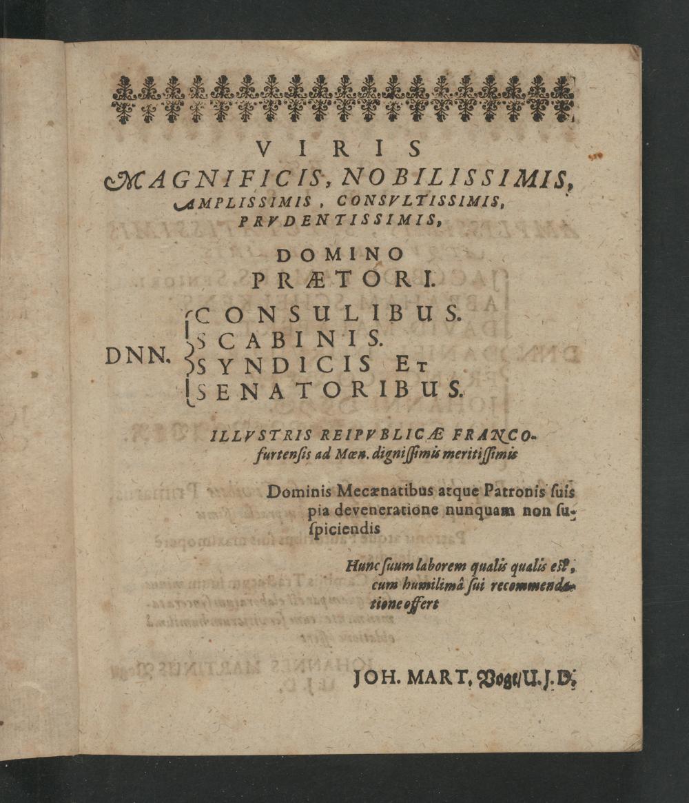 Dominis M ecænatibus atque patronis suls pia deveneratione nunquam non su⸗ „ 5
