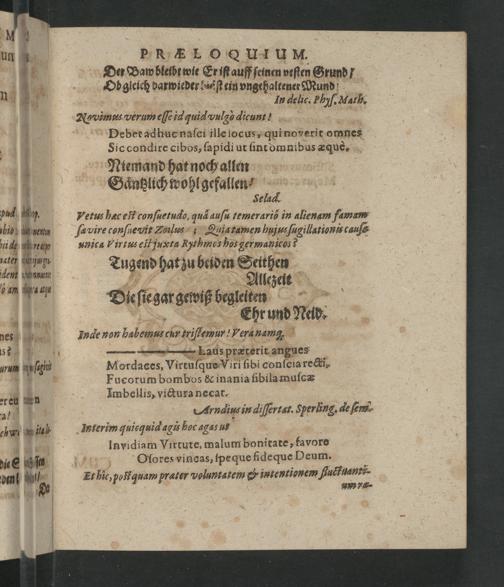 n e“ I n delic. 5 Mah. n. N 0 quid vulgů dicunt: 1 Debet adhuc nasci ille locus, qui noverit omnes 5 g Sic condire cibos, sapidi ut sint omnibus æ que, 163 Niemand hat noch allen Gäntzlich wohlgefall 8 4 2 47 Vetus hæc en e l ae semeraris in alienam famam % 4 evire consuevit Suilus; Qliatamen hujussegillationis causc ah, unica W irtus eit juxta Nyhmos hs germanicoss „ Weh t Se 2 in, Tugend hat u beiden e 0 an 8 % Deegan a g ban 114 Ehr und Nad. nes Inde non ian ifi Veri namq. 52 1 klaus præterit angues nun 10 U Mordaces, Vietnsqus Vir sibi conscia recti,