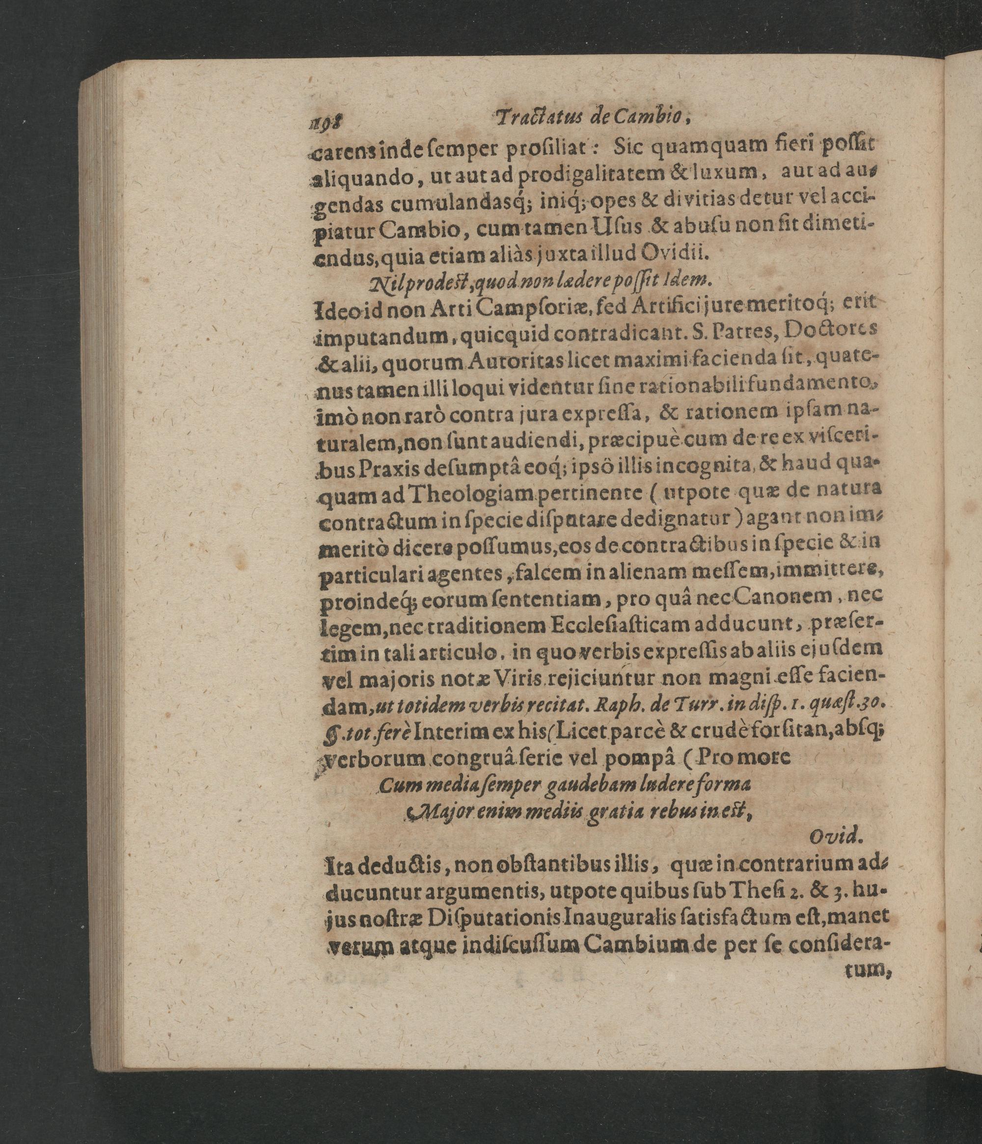 Cum media semper gaudebam ludere forma Major enim mediis gratia rebus in eit, Ovid. Ita deductis, non obstantibus illis, quæ incontrarium ad⸗ ducuntur argumentis, utpote quibus sub Thesi 2.& 3. hu · jus nostræ Disputationis Inauguralis satisfactum est, manet verum atque indiscussum Cambium de per se considera- tum,