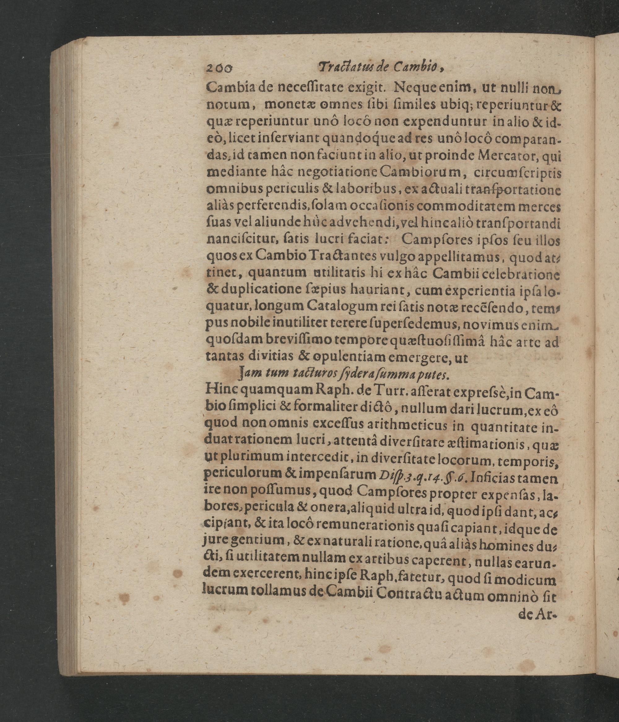 Cambia de necessitate exigit. Neque enim, ut nulli non. notum, monetæ omnes sibi similes ubiq; reperiuntur& quæ reperiuntur unò locò non expenduntur in alio& id. eò, licet inserviant quandoꝗͥue ad res unò locò comparan. das, id tamen non faciunt in alio, ut proinde Mercator, qui mediante hàc negotiatione Cambiorum, circumseriptis omnibus periculis& laboribus, ex actuali transportatione aliàs perferendis, solam occasionis commoditatem merces suas vel aliunde hu advehendi, vel hinealiò transportandi nanciscitur, satis lucri faciat? Campsores ipsos seu illos quos ex Cambio Tractantes vulgo appellitamus, quod at; tinet, quantum utilitatis hi ex hac Cambii celebratione & duplicatione sæpius hauriant, cum experientia ipsa lo- quatur. longum Catalogum rei satis notæ recẽsendo, tem⸗ pus nobile inutiliter terere supersedemus, novimus enim. quosdam brevissimo tempore quæstuosissima hàc arte ad tantas divitias& opulentiam emergere, ut Jam tum tacturos sydera summa putes. Hine quamquam Raph. de Turr. asserat expressè, in Cam- bio simplici& formaliter dictò, nullum dari lucrum, ex e quod non omnis excessus arithmeticus in quantitate in- duat rationem lucri, attentà diversitate æstimationis, quæ ut plurimum intercedit, in diversitate locorum. tem poris, periculorum& impensarum Disß 8. q. Ic. Nd. Inficias tamen ire non possumus, quod Campsores propter expensas, la. bores, pericula& onera, aliquid ultra id. quod ĩpsi dant, ac⸗ cipiant,& ita locò remunerationis quasi capiant, idque de jure gentium,& ex naturali ratione, qua aliàs homines du⸗- ccti, si utilitatem nullam ex artibus caperent, nullas earun- dem exercerent, hine ipse Raph. fatetur, quod si modicum luerum tollamus de Cambii Contractu actum omninò sit
