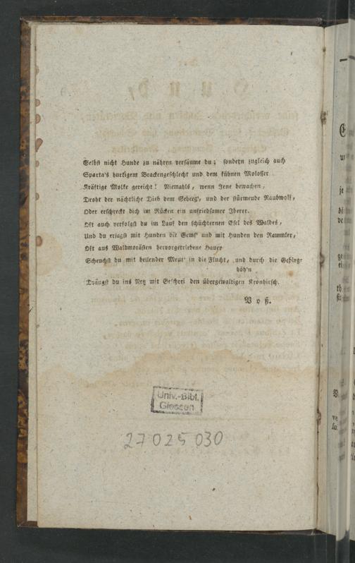 Droht der nächtliche Dieb dem Geheeg, und der ſtürmeude Raubwolf,