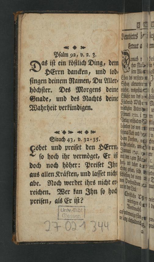 Pſalm 92, v. 2. 3. 0 Das iſt ein koͤſtlich Ding, dem f e HErrn dancken, und lob⸗ inn e i