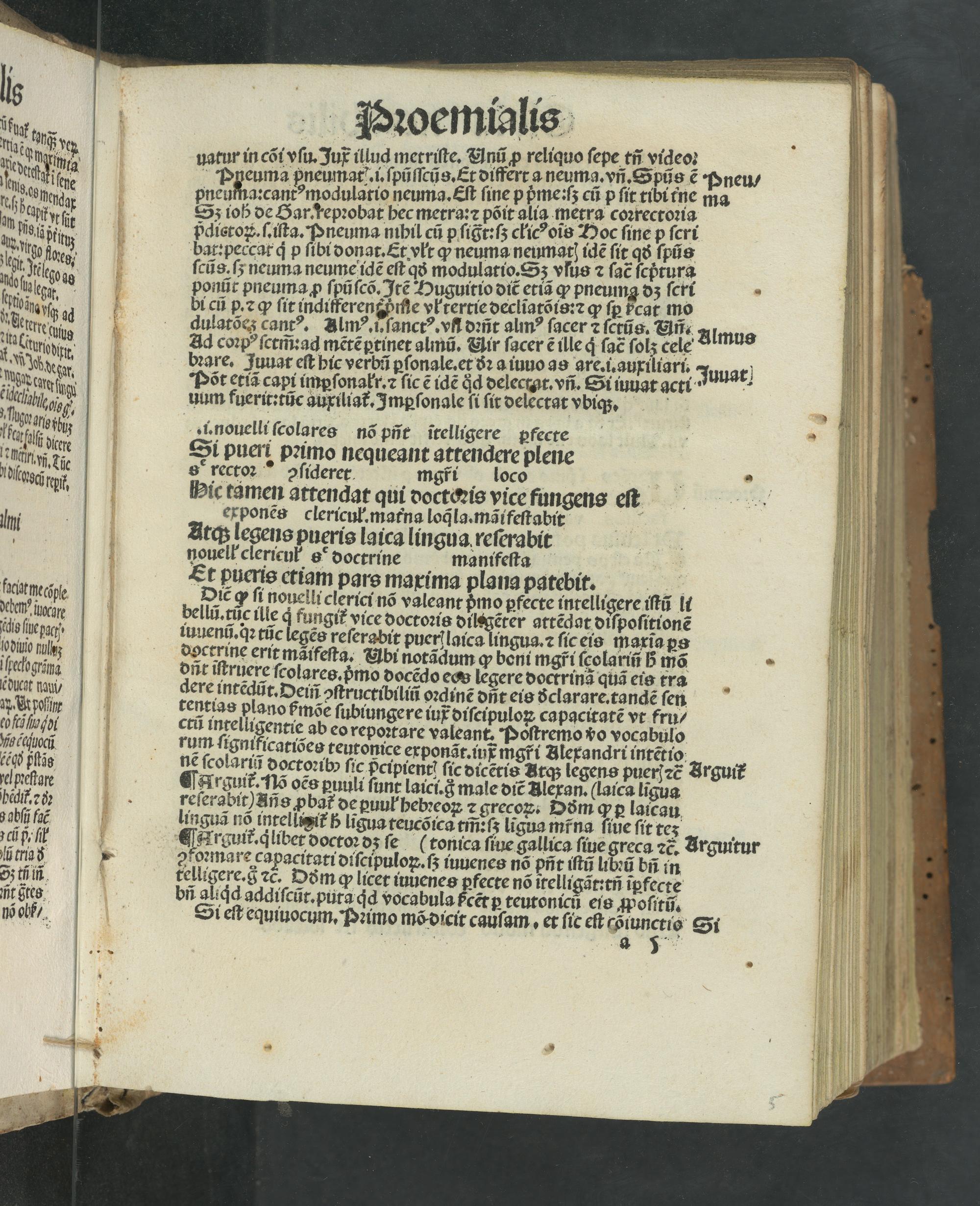 1 Almus d.v bꝛare. Juuat eſt hic verbũ ꝑſonale. et ðꝛ a iuuo as are. i.auxiliari. at ngüdeim Pore eru hneid Floale qd delectt. vñ. Si uuuat acri Juuat, Kitelahn rug uum fuerit:tũc auxiliat᷑. Imꝑſonale ſi ſit delectat vbiq;.. 9 wani hue I. nouelli ſcolares nõ pñt itelligere ꝑfecte 2 tutſäüdene Si pueri pꝛimo nequeant attendere plene altesa.Lir b 2 rectoꝛ 2ſiderer mgfi loco. zahng.. Hic tamen attendat qui doctoꝛis vice fungens eſt Vnj exponẽs clericul. matna loq̃la.mãi feſtabit Am b Atq; legens pueris laica lingua reſerabit 1 nouell clericut o doctrine manifeſta. Et pueris etiam pars maxima plana patebit. faclot mecöle Diẽ ꝙ ſi nouelli clerici nõ valeant pᷣmo ꝑfecte intelligere iſtũ li detem' xcgde bellũ. tůc ille q fungik vice doctoꝛis dilsgẽter attẽdat diſpoſitionẽ ſis ſneac, uuenij. qꝛ tũc legẽs reſerabit puer, laica lingua.⁊ ſic eis maxia ꝑs ſodiuio fules doctrine erit maifeſta. Vbi notãdum ꝙ beni mgf̃i ſcolariñ ßᷣ mõ 2 iſgeckogräma dñt iſtruere ſcolares.ᷣmo docẽdo ect legere doctrinã quã eis tra tducgt naui;‚, dere intẽdũt. Deiñ ↄſtructibiliũ oꝛdinẽ dñt eis ðclarare.tandẽ ſen ae.Srpoſiyf tentias plano ßmoe ſubiungere iue diſcipuloꝝ capacitatẽ vt fru/ do fti ſun„ol ctũ intelligentie ab eo repoꝛtare valeant. Poſtremo vᷣo vocabulo Votajuocca rum ſignificariões teutonice exponãt. iuỹ mgf̃i Zlexandri intẽtio ägò pſtis ne ſcolariũ doctoꝛibo ſic pᷣcipient ſic dicẽtis Atq; legens puer ⁊cẽ̃ Srguit᷑ rel pꝛeſtare ¶ rguit᷑. nõ oẽs ꝑuuli funt laici. g male diẽ Blexan.(laica ligua pecie 28:. reſerabit) Añs ꝓbat de puul hebꝛeoꝝ ⁊ grecox. Dðᷣm ꝙfp laicau obſ ſu lunguã nõ intelligit᷑ h ligua teucõica tm̃:ſʒ lĩgua mr̃ᷣna ſiue ſit teʒ. cp hk Arguik. qliber doctoꝛ dz ſe(tonica ſiue gallica ſiue greca ⁊c. Arguitur lutrads ⸗ ↄfoꝛmare capacitati diſcipuloꝝ.ſʒ iuuenes nõ pꝑñt iſtũ libꝛũ bñ in S; tñm. telligere. ꝛc. Dðm ꝙ licer iuuenes ꝑfecte nõ itelligãt:tñ iꝑfecte t gtes bñ aliqͥd addiſcũt. pura qͥd vocabula fᷣcẽt ꝑ teutonicn eis ꝓoſitũ. nõ ohf/ Si eſt equiuocum. Pꝛimo mõ dicit cauſam, et ſic eſt cõiunctio Si