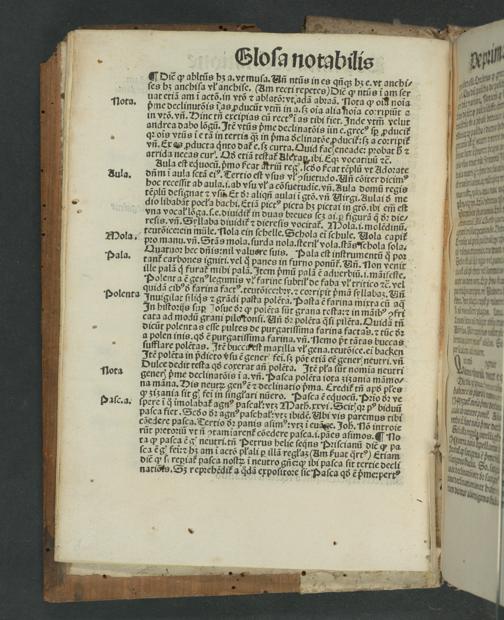 ſpere ĩ q imolabat᷑ agnꝰ paſcal:vt; Matb. xxvi. Scit qꝛ pꝰ biduũ paſca fiet. Scðᷣo ðꝛ agnꝰ paſchał:vtʒ ibidẽ. Vbi vis paremus tibi cõedere paſca. Tertio ðꝛ panis aſimꝰ:vtʒꝭ ĩ euãge. Job. Nõ introie rũt pꝛetoꝛiũ vt ñ ↄtam iarent᷑ cõedere paſca.i.pães aſimos.¶ Ilo ta ꝙ paſca ẽ˖gi neutri.tñ Petrus bhelie ſeq̃ns Pꝛiſcianũ diẽ ꝙ pa ſca ẽg feĩ:⁊ hʒ am ĩ actõ płali ꝑ illã reglaʒ( Am ᷣuat q̃rtꝰ) Etiam diẽ ꝙ ſi reꝑiat᷑ paſca noſtꝝ ĩ neutro gñe:ꝙ ibi paſca ſit tertie decli natiõts. Sʒ repꝛehẽdit᷑ a qͥdã expoſitoꝛe ſic Paſca qð ẽ pᷣme:pertꝰ