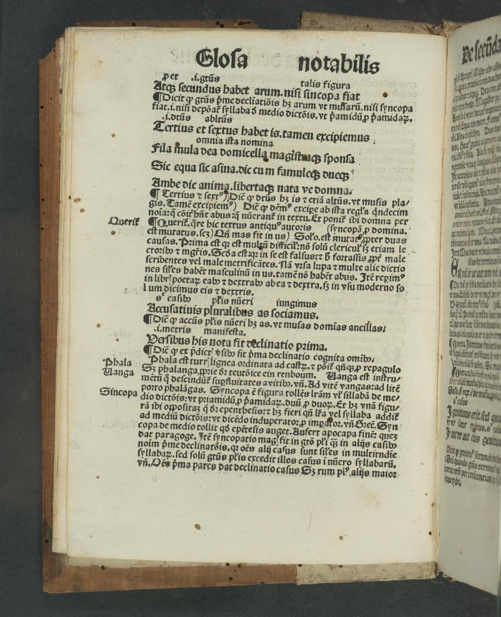 Querik ¶ Querit᷑.q̃re hic textus antiquꝰ autoꝛis ſyncopã ꝓ domina. . eſt muratus.ſcʒ) Qñ mas fit in us) Solo. 1 nrasfmprer duas cauſas. Pꝛima eſt qꝛ eſt mulxũ difficil:nõ ſolũ clericul ſz eriam le.