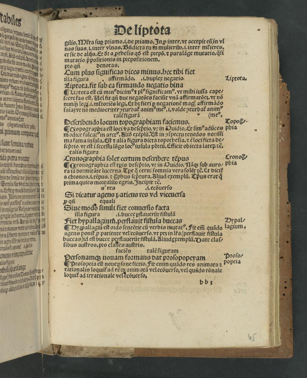 ſibus auſtros.pꝛo claſſes auſtris. facies rtalẽ figuram erſonamq; nouam foꝛmans dat pꝛoſopopevyam Dꝛoſo/ ¶ Pꝛoſopeia eſt nouepſone fictio. Fit enim quãdo res animata⁊ Popetia