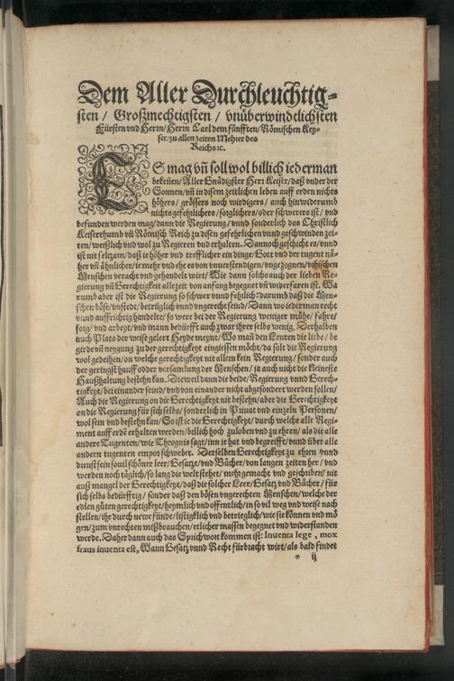 S‿‿ S mag vñ ſollwol billich iederman G G bekenen/ Aller Onaͤdigſter Her: Keiſer/ daß vnder der 2W VO Sonnen/ i in diſem zeitlichen leben auff erden nichts