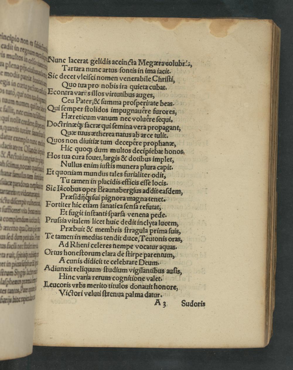 aue Ortus hioneſtorum clara de ſtirpe parentumm, n Acunis didicit te celebrare Deum. b Adiunxit reliquum ſtudium vigilantibus auſis, — Hinc varia rerum cognitidne valet. Lipbenn Leucoris vrbs merito titulos donauit honore, 48 Vicctori veluti ſtrenua palma datur.