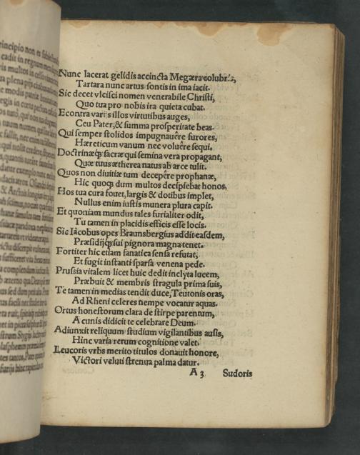 Aplenapin Tartara nunc artus ſontis in ima iacit. emodig aa Sic decet vlciſci nomen venerabile Chriſti, Iriac Quo tua pro nobis ira quieta cubat. — a Econtra varts illos virtutibus auges, 36 e Ceu Pater,& ſumma proſperitate beas. Qui ſemper ſtolidos im pugnauère furores, ue, Hareticum vanum nec voluère ſequi. Doctrinæq ſacræ quiſeminaverapropagant, aatax Que tuusætfierea natus ab arce tulit. englee Quos non diuitiæ tum decepere prophanæ, umar ae Hic quoqʒ dum multos decipiebat honos — Hos tua cura fouet, largis& dotibus implet, : Dullus enim iuſtis munera plura capit. — dmmacgian Sic Iacobus opes Braunsbergius additeaſdem, rhnricenn Præſidijć ſui pignora magnatenet. ucſerni miimn Fortiter hic etiam fanatica ſenſa refutat, Henxrretma dnmn Et fugit inſtanti ſparſa venena pede. cumglentamata Pruſsia vitalem licet huic dedit inclyta lueem, rgen Præbuit& membris ſtragula prima ſuis,