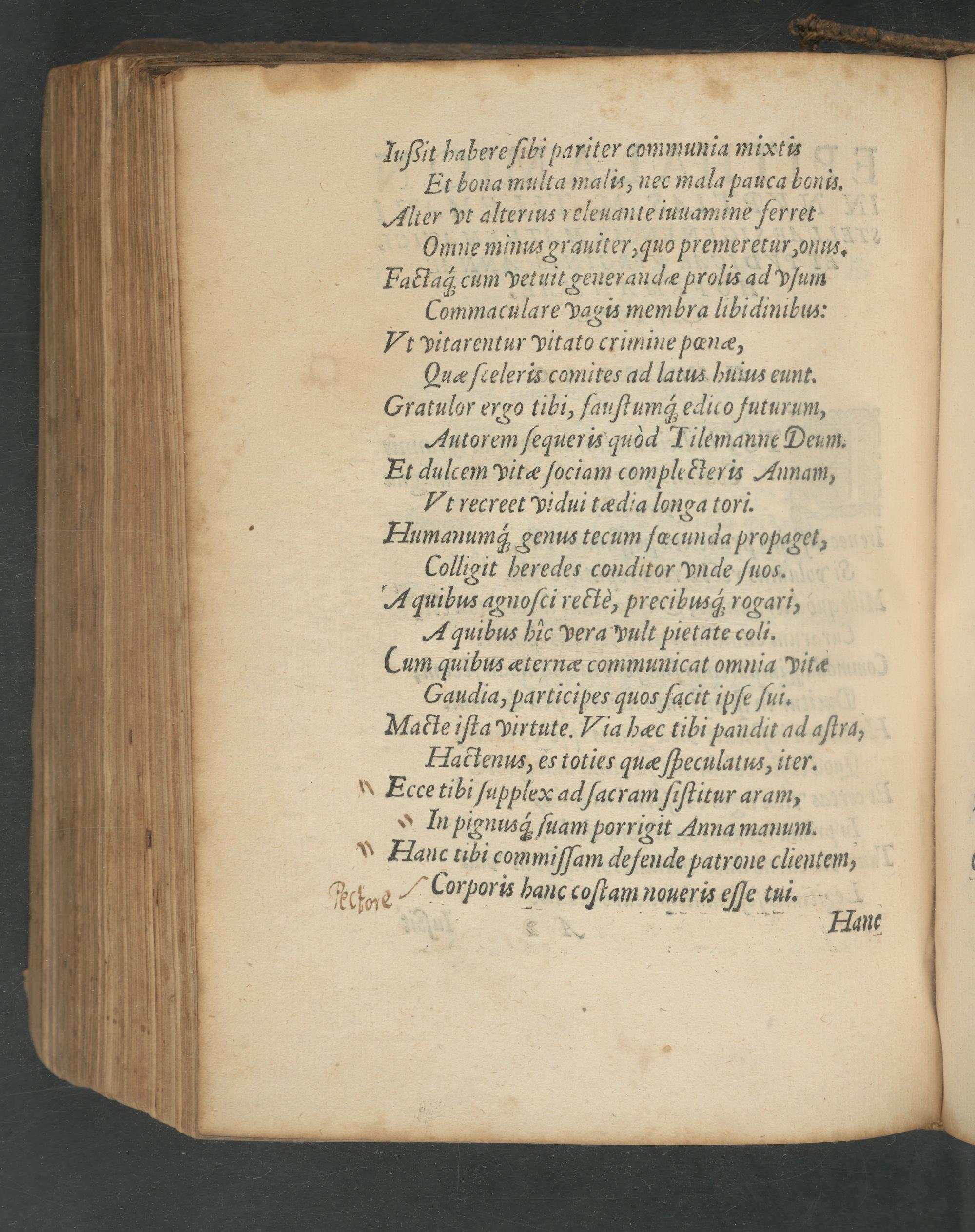 Quæ ſceleris comites ad latus huius eunt. Gratulor ergo tibi, fanſtum; edico futurum, Autorem ſequeris quod Iilemanne Deum. Et dulcem vitæ ſociam complecteris Aunam,