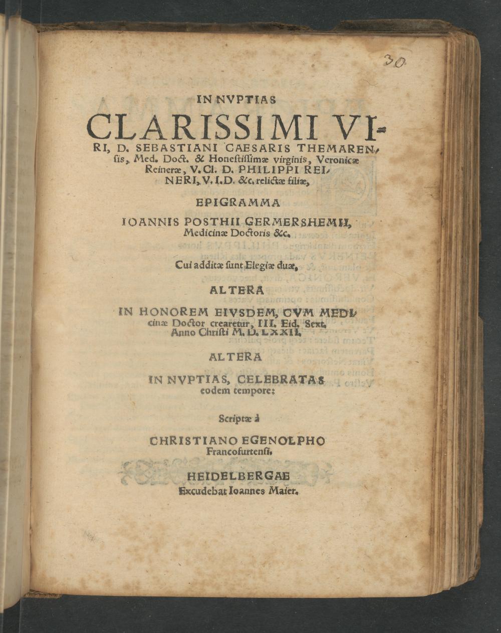 HEIDEELBERGAE Fxcudebat Ioannes Mater.